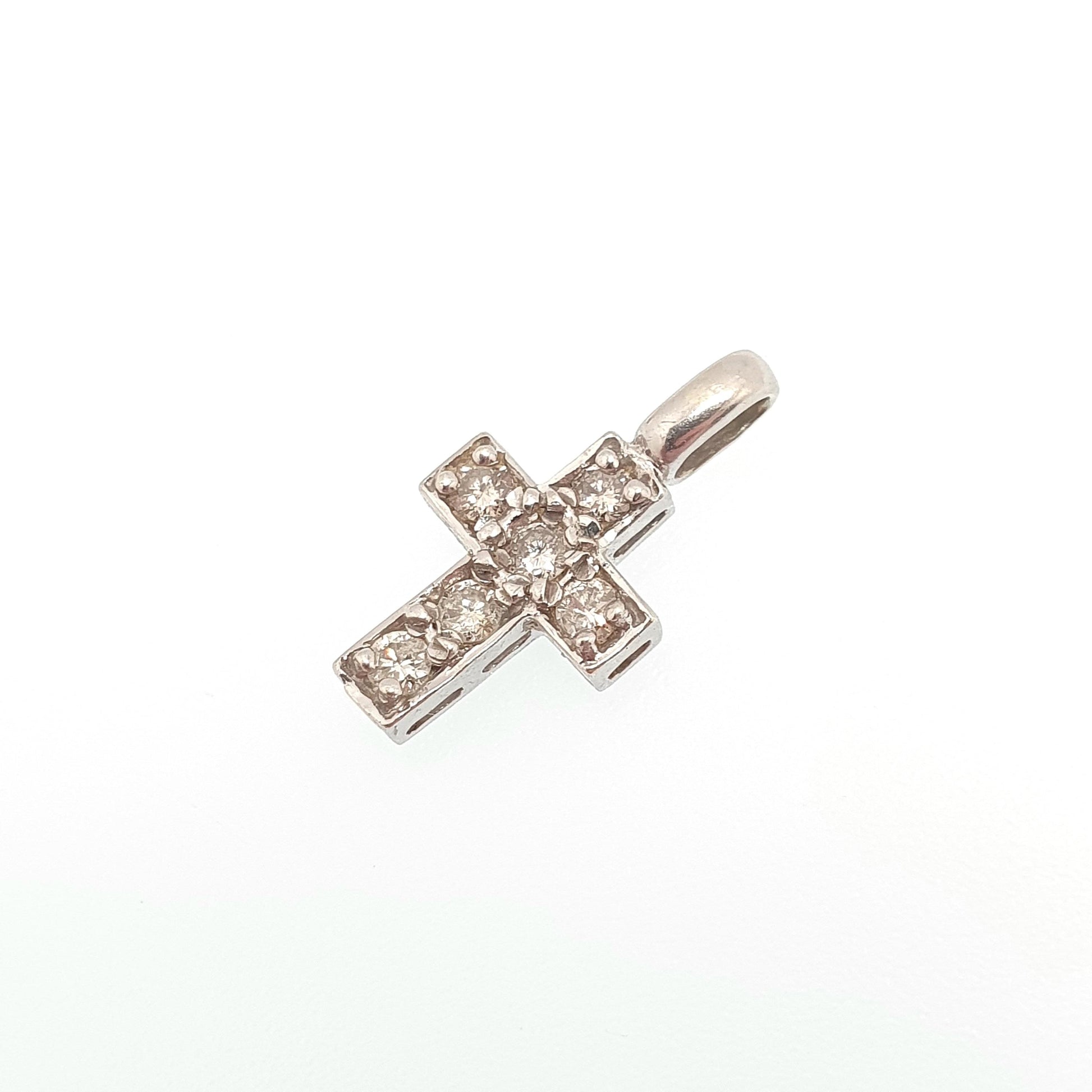 Vintage 9ct Gold Diamond Cross Crucifix Pendant Natural Diamonds Solid 9k 9kt 375 Necklace White Gold Jewelry