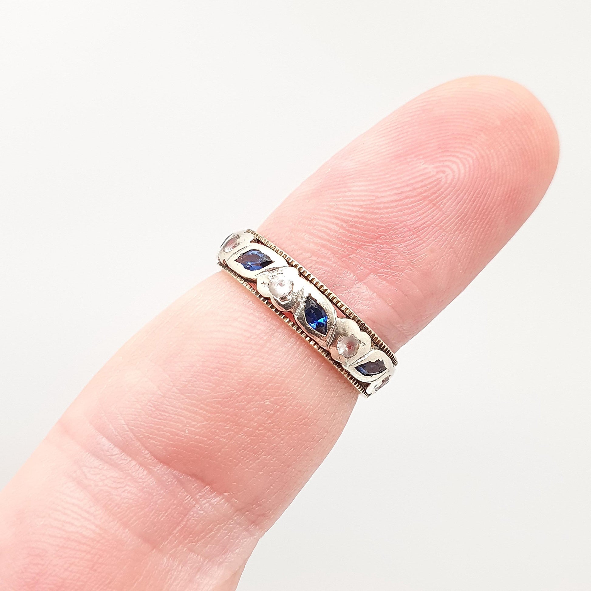 Vintage 9ct Gold Sapphire Eternity Ring White Spinel Marquise Cut Full Band Gemstone Solid 9k 375 Womens Jewelry Jewellery