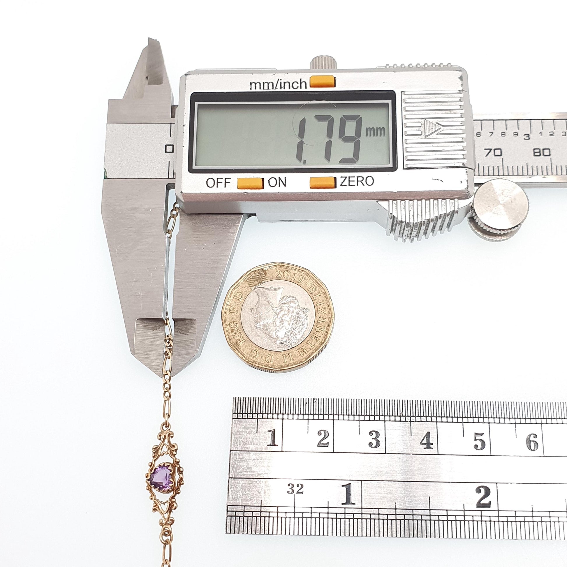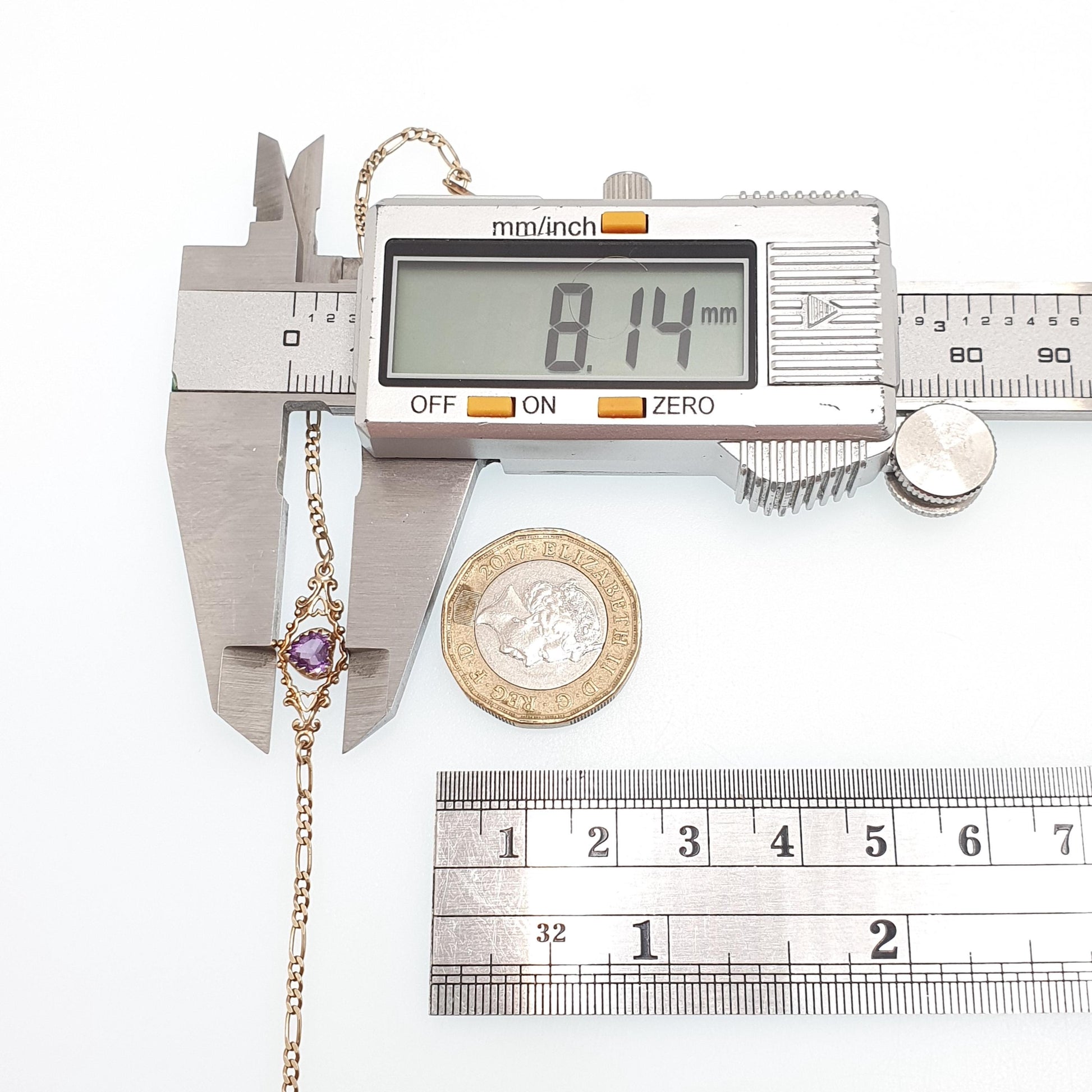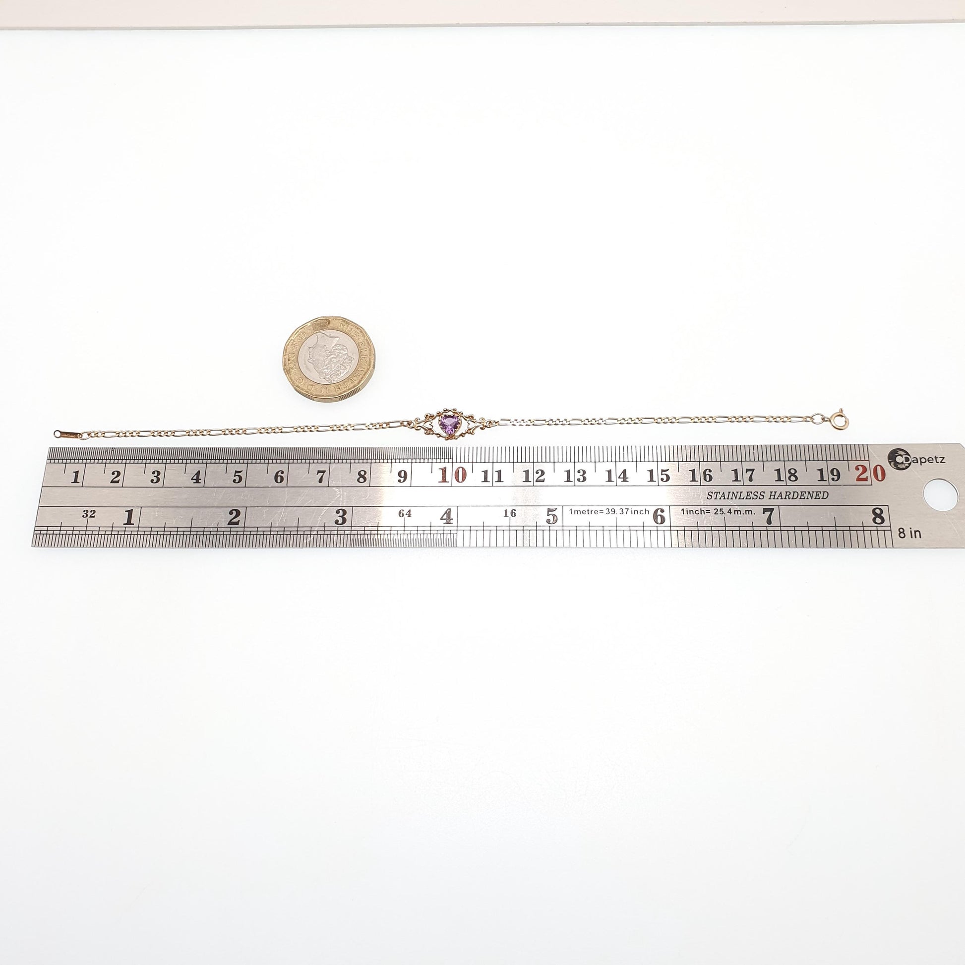 Vintage 9k 9ct Gold Amethyst Bracelet Heart Cut Figaro Link Chain 19cm 7.5" 1.66g Hallmarked Solid 9kt 9 Carat Womens Jewellery Jewelry