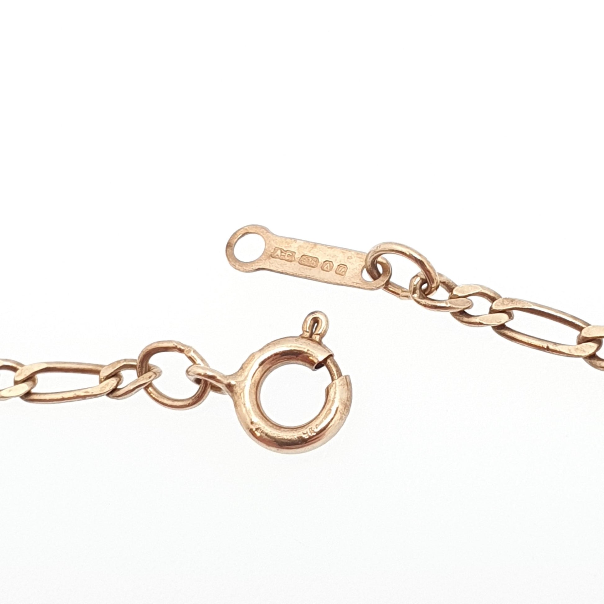 DESCRIPTION: A genuine vintage solid 9ct 375 gold figaro link chain bracelet, adorned with a heart cut amethyst gemstone. The bracelet is hallmarked for 9ct gold, dating to 1994. It measures approx. 19cm or 7.5" in unfastened length and weighs approx. 1.66g. The bracelet is lightweight and delicate, therefore I wouldn't recommend wearing whilst doing daily activities like exercising, cleaning, etc.