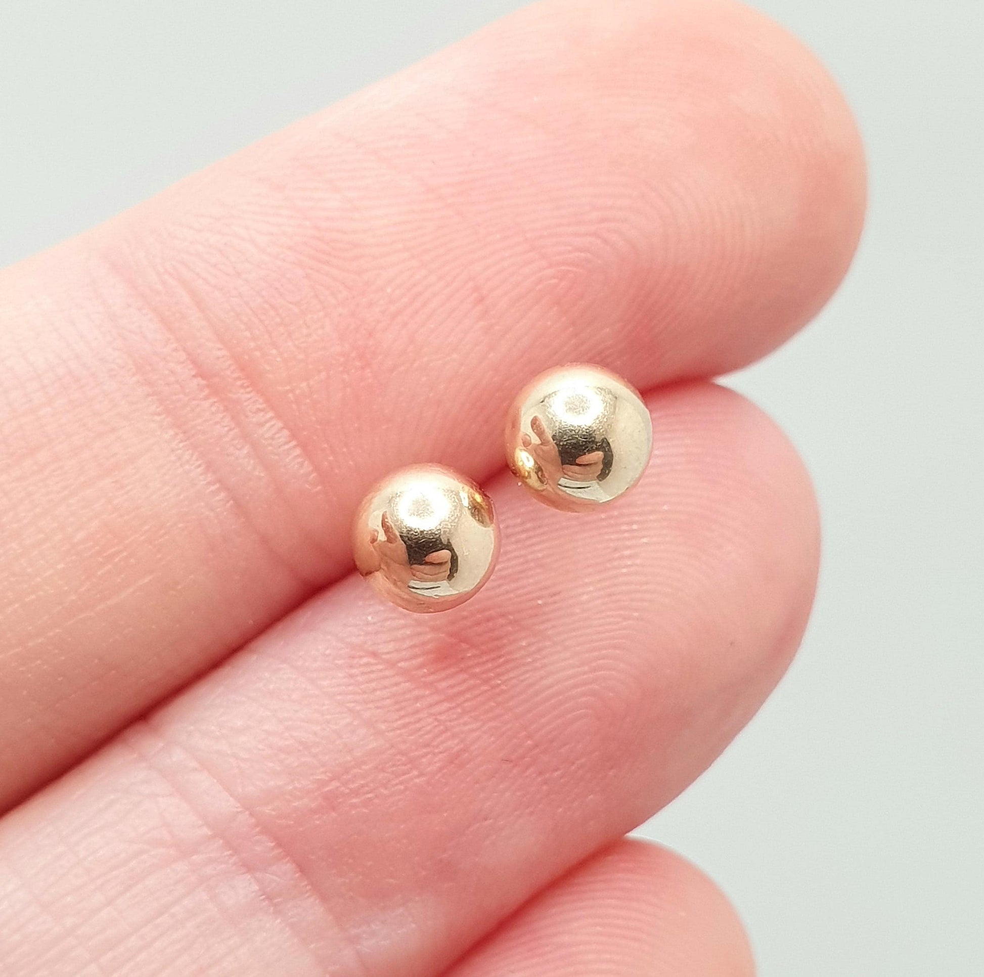 Vintage 9k 9ct Gold Ball Bead Stud Earrings Sphere Round 1980s Retro Yellow 375 Jewelry Jewellery