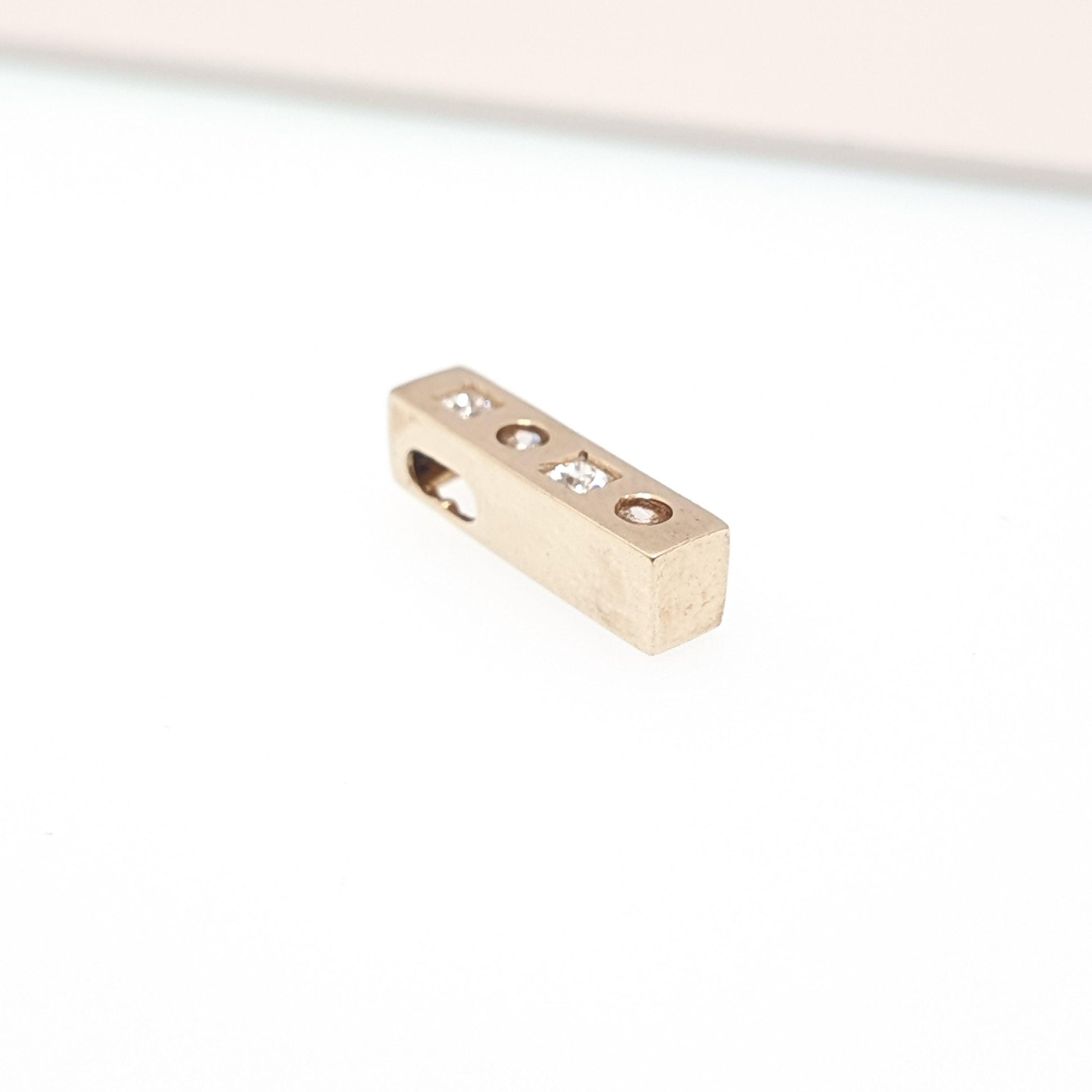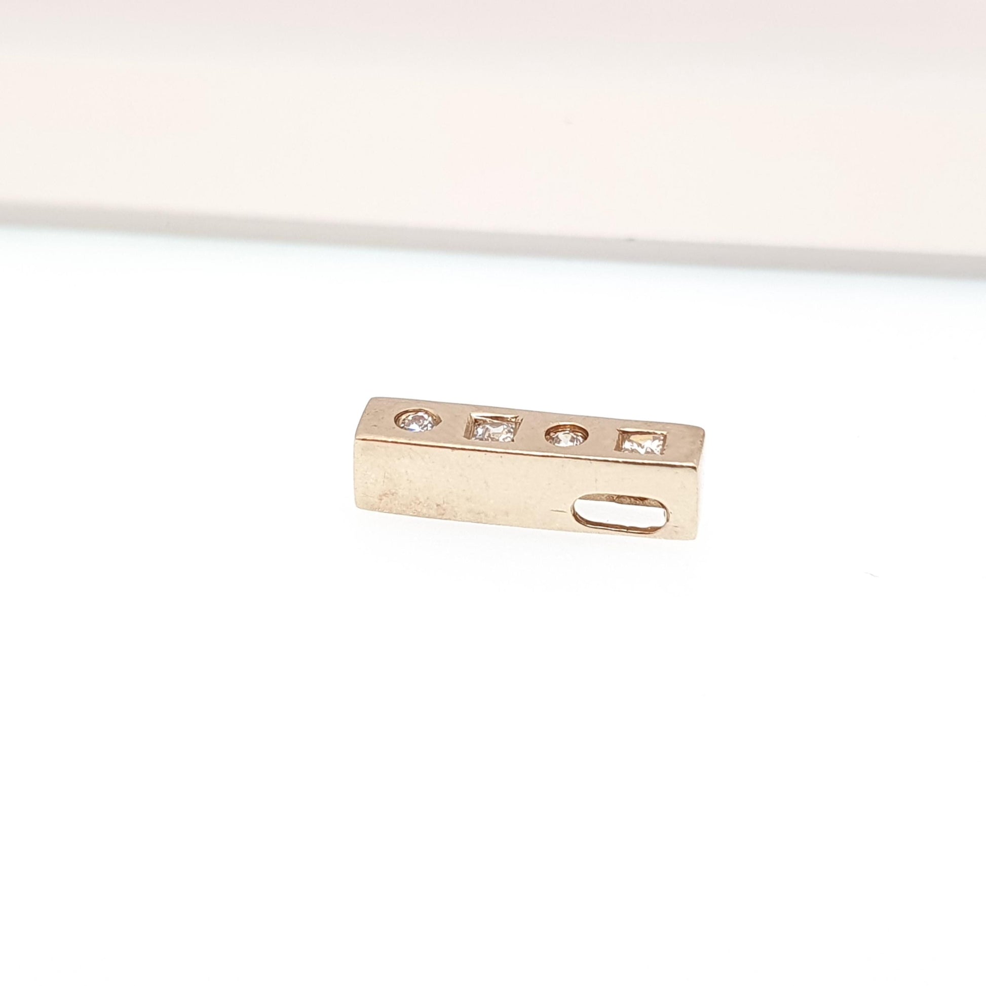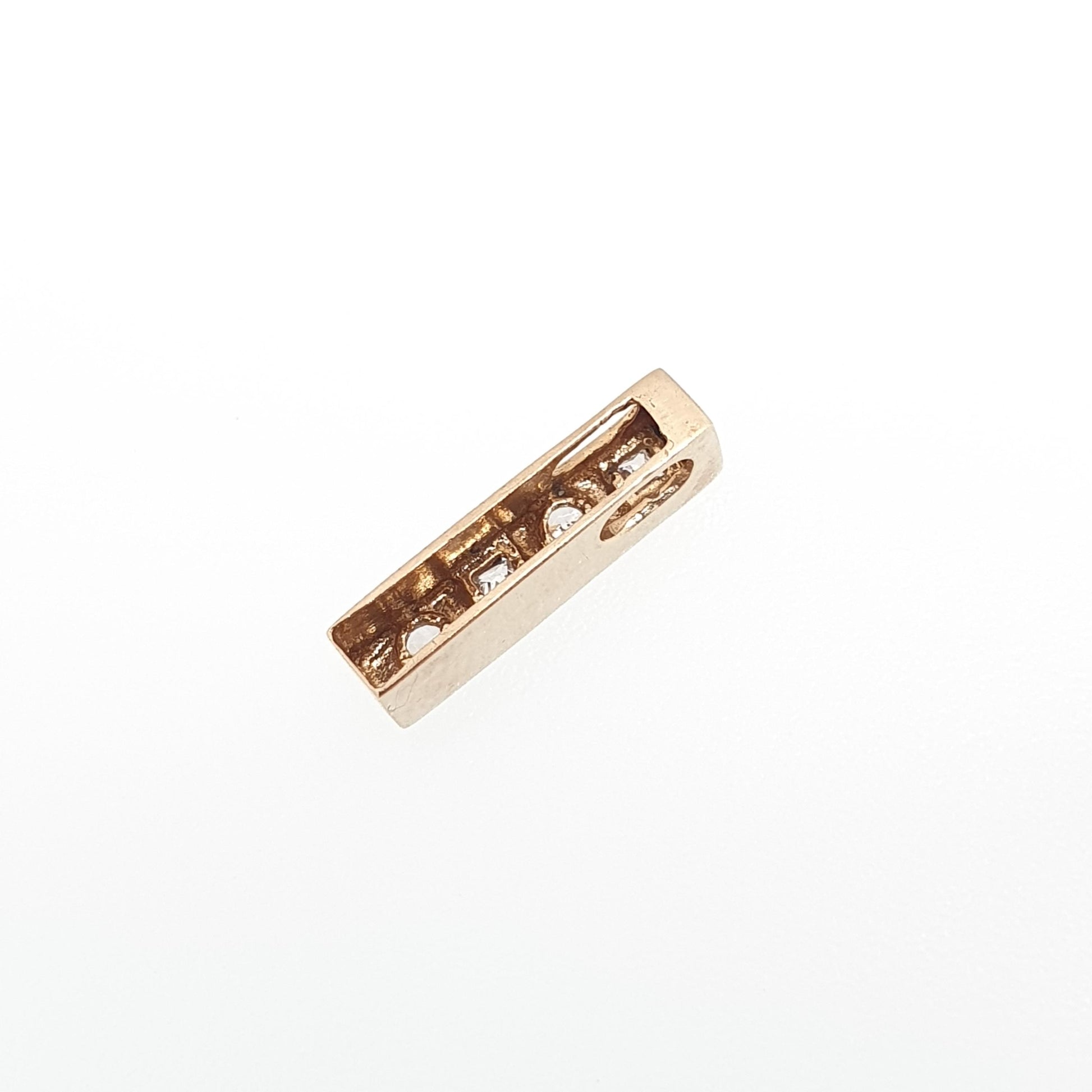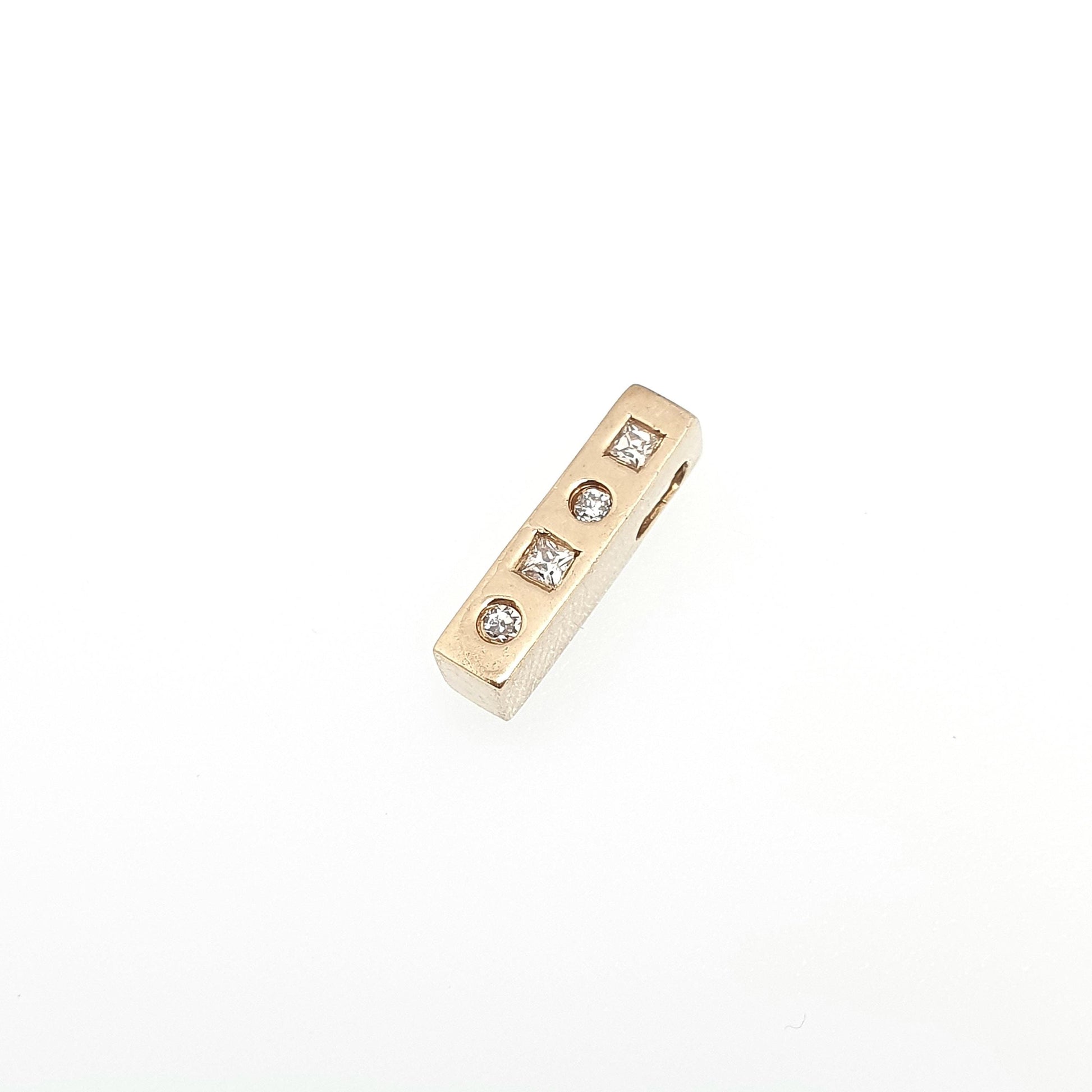 Vintage 9k 9ct Gold CZ Pendant Bar Rectangular Necklace Solid 375 Diamond Simulant Square Cut Cubic Zirconia Small Jewelry Jewellery