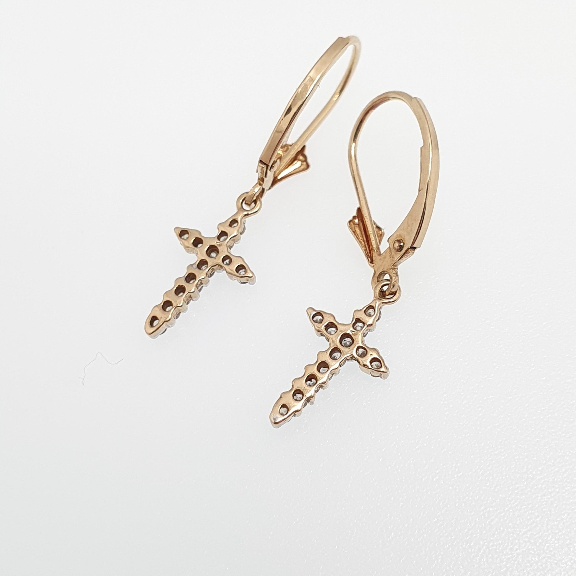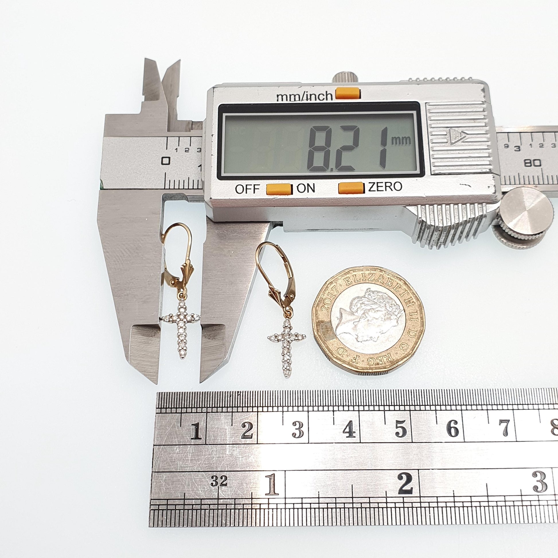 DESCRIPTION: A stunning pair of vintage genuine diamond cross earrings, made from solid 9ct gold. Each earring has numerous brilliant cut diamonds (100% tested) in an open back setting. The earrings weigh a combined total of approx. 1.33g and the size dimensions are in the later photos. The earrings aren't stamped/hallmarked but tests for solid 9ct 375 gold.