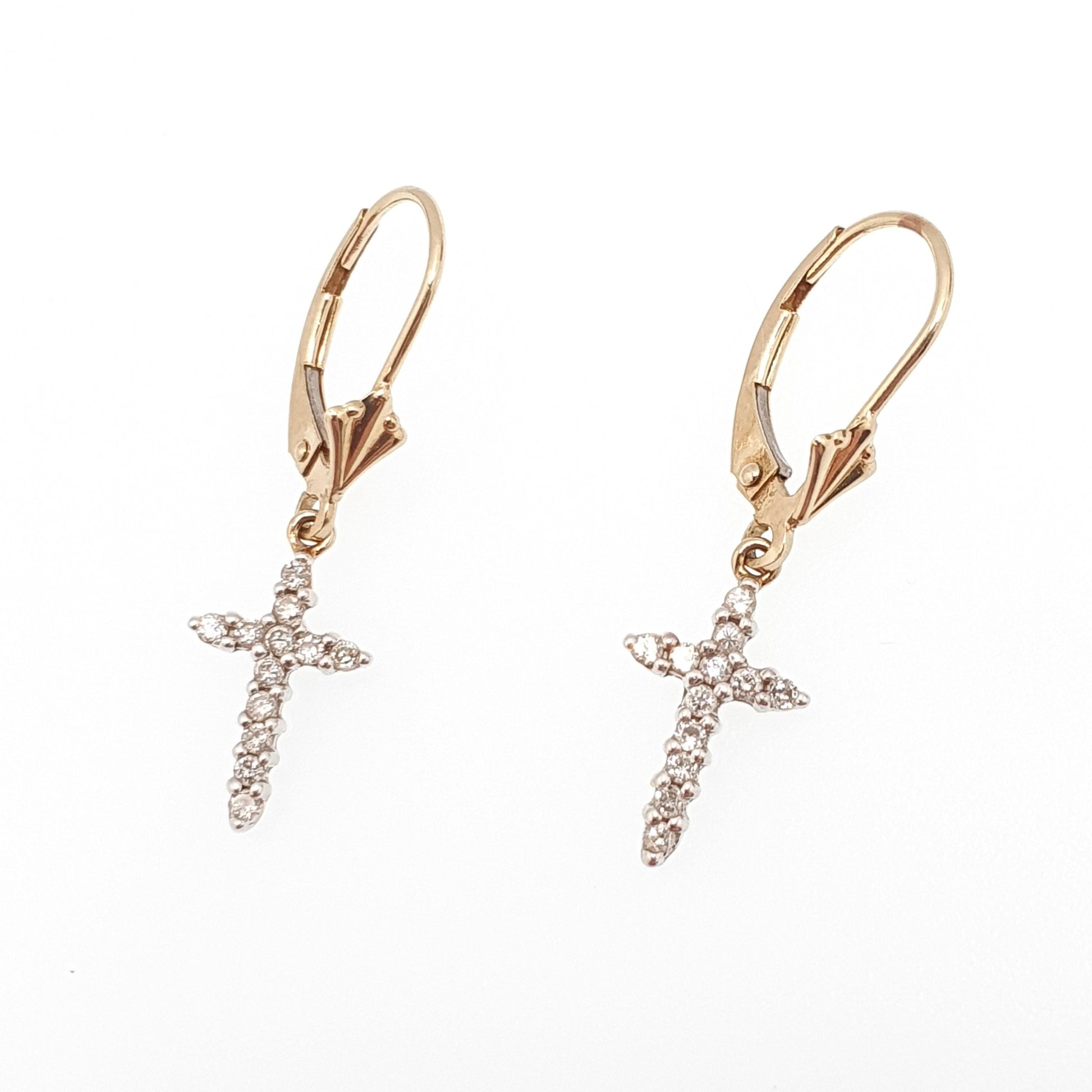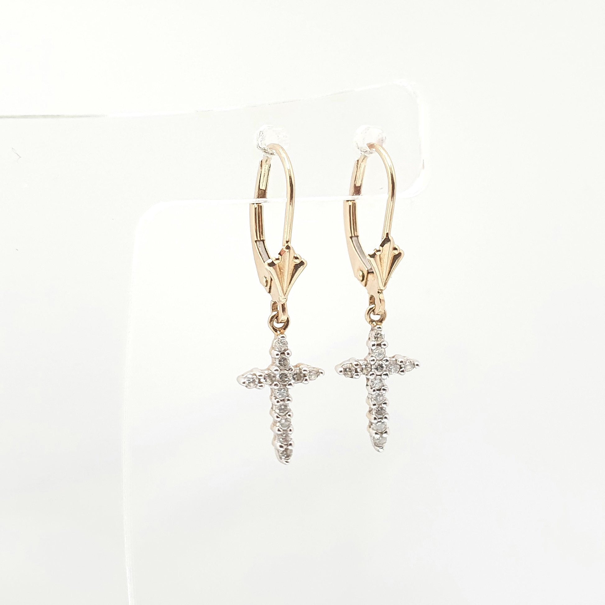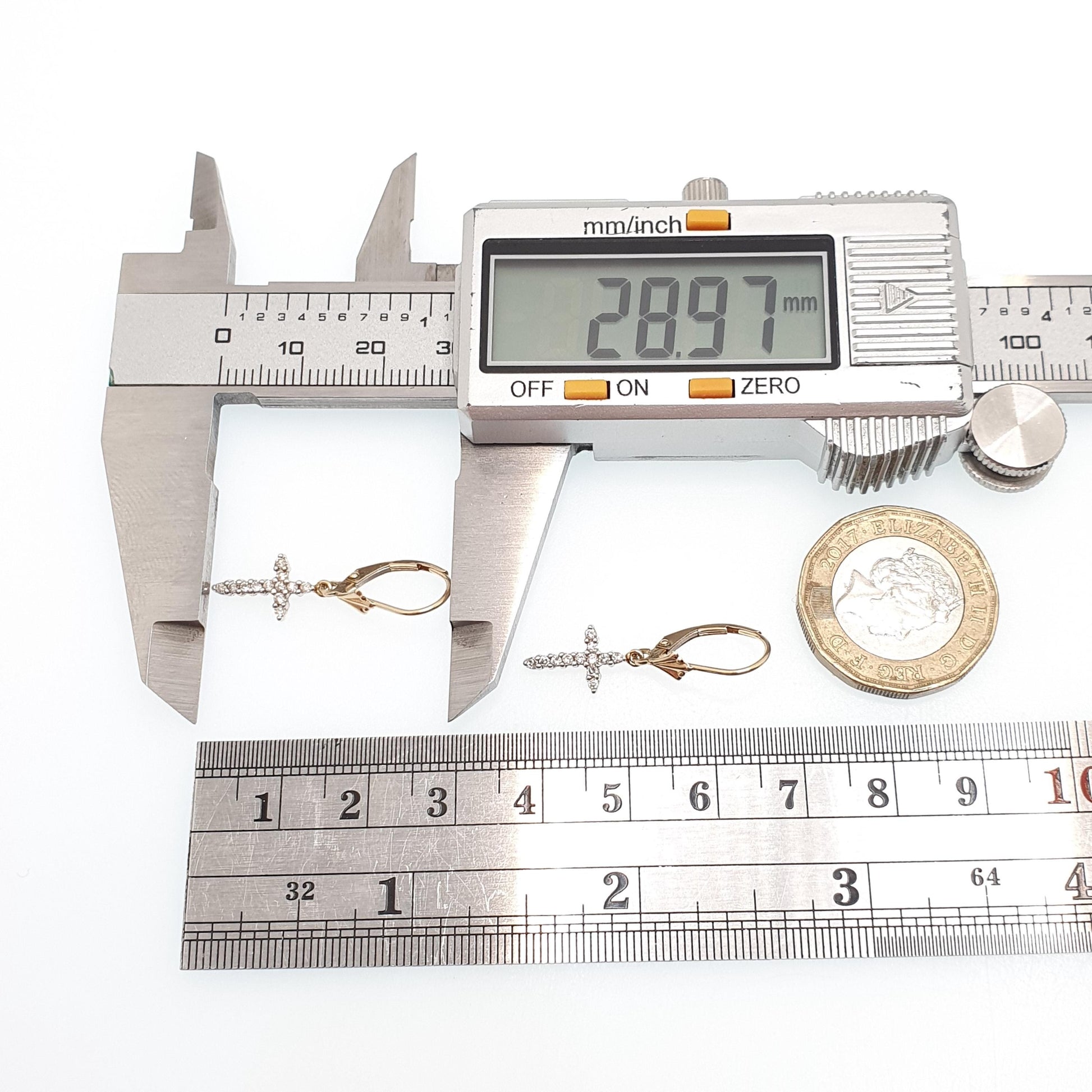Vintage 9k 9ct Gold Diamond Cross Earrings Crucifix Genuine Diamond Hook Dangle Brilliant Cut Solid 375 Jewelry Retro Jewellery