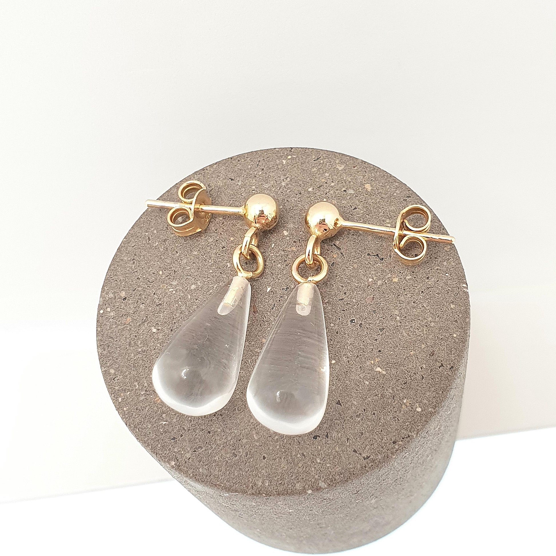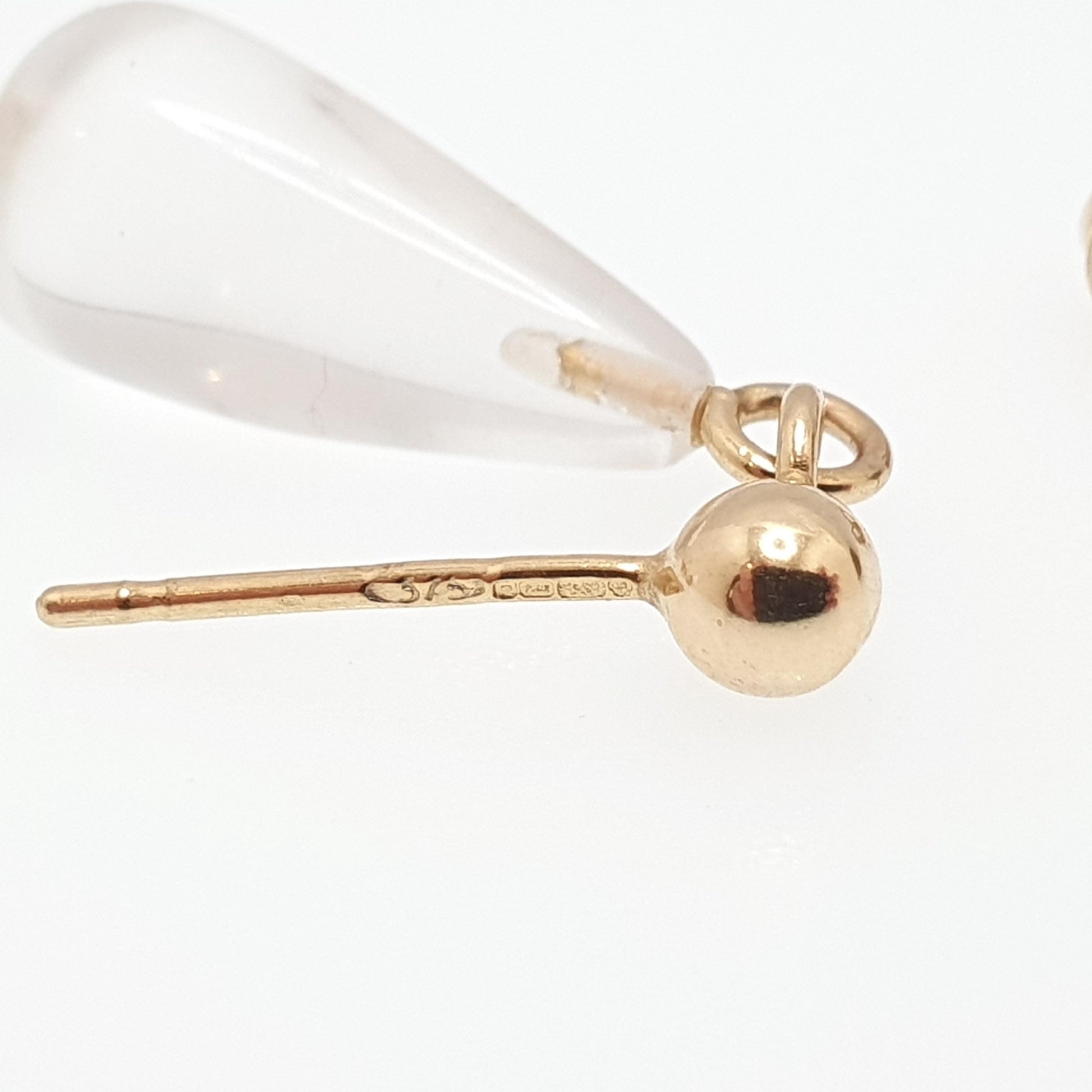 Vintage 9k 9ct Gold Rock Crystal Earrings Clear Quartz Teardrop Hanging Drop Stud Solid 9 375 Real Gemstone Genuine Womens Jewelry Jewellery