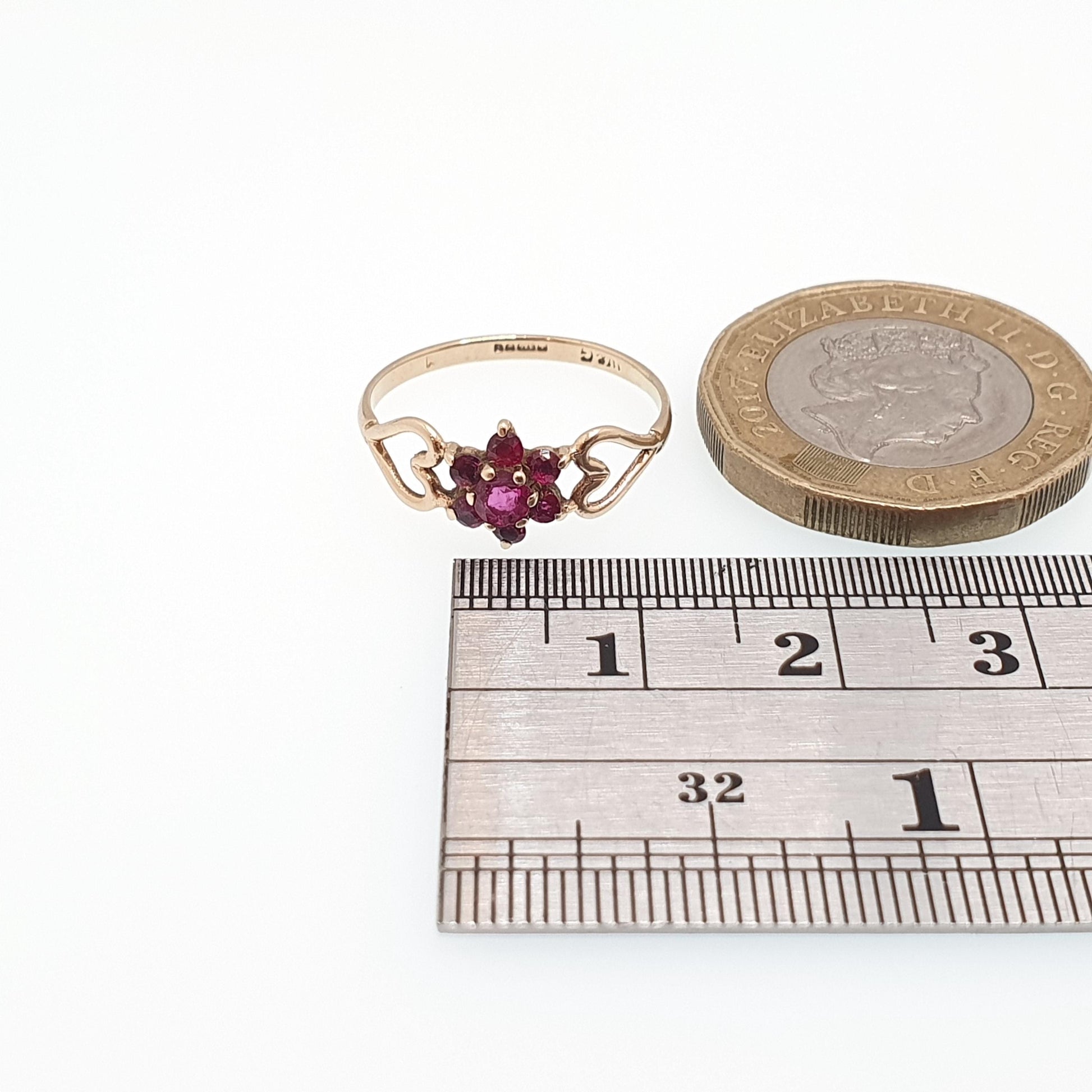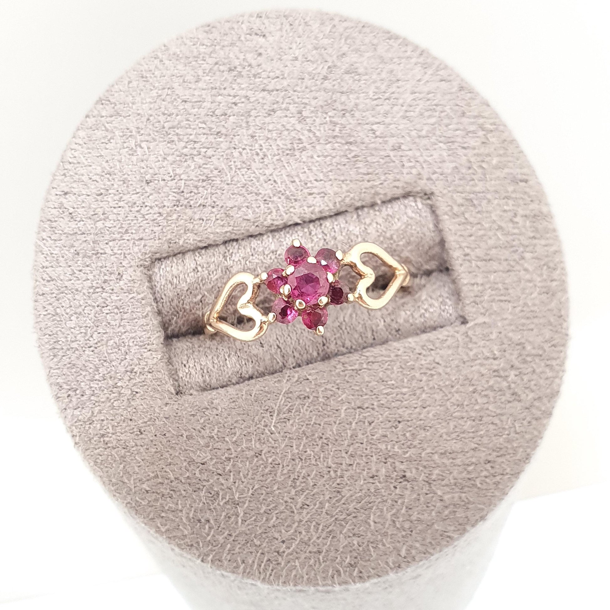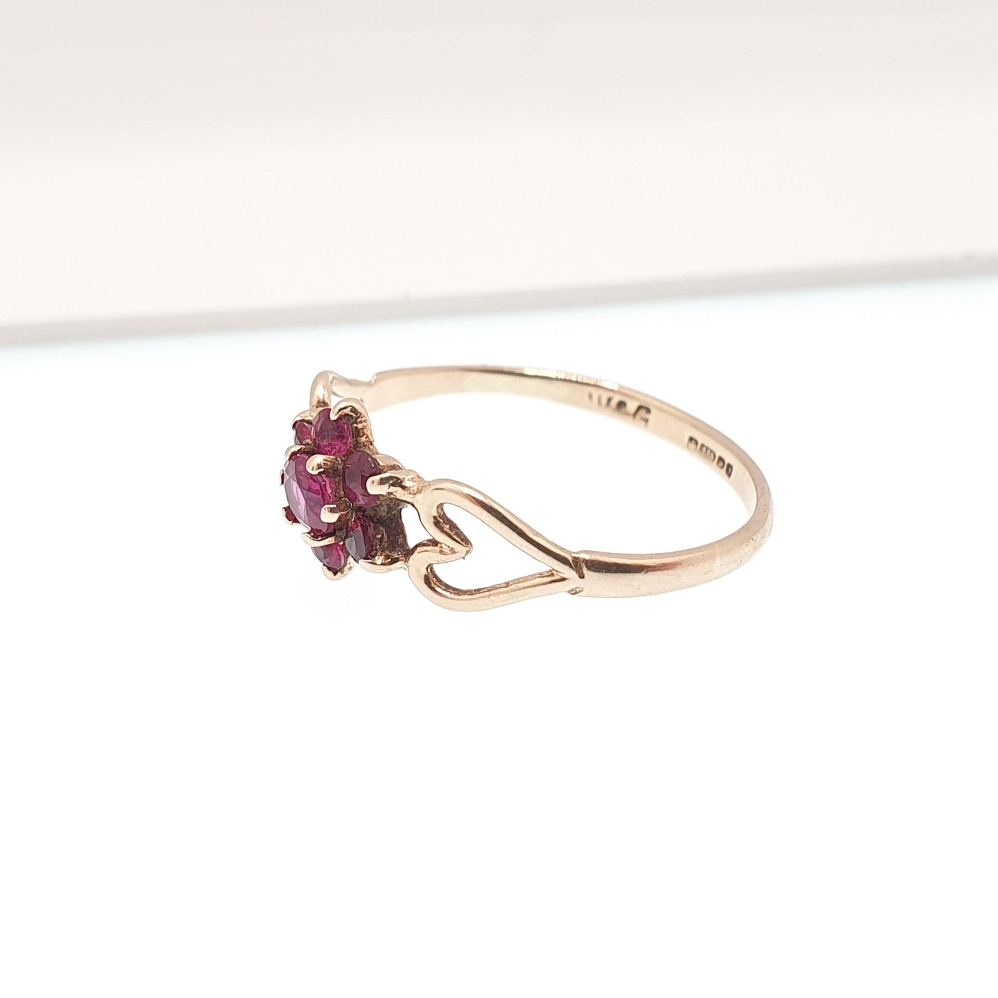 Vintage 9k 9ct Gold Ruby Ring Cluster Hallmarked Solid 375 9kt Red Genuine Gemstone Heart Shoulders Womens Jewelry Jewellery
