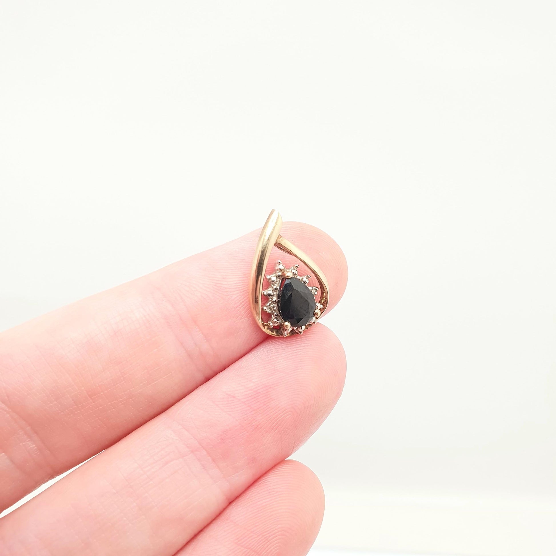 Vintage 9k 9ct Gold Sapphire & Diamond Necklace Pear Cut Pendant Cluster Small Solid 375 Yellow Cute Ladies Womens Jewelry Retro Jewellery
