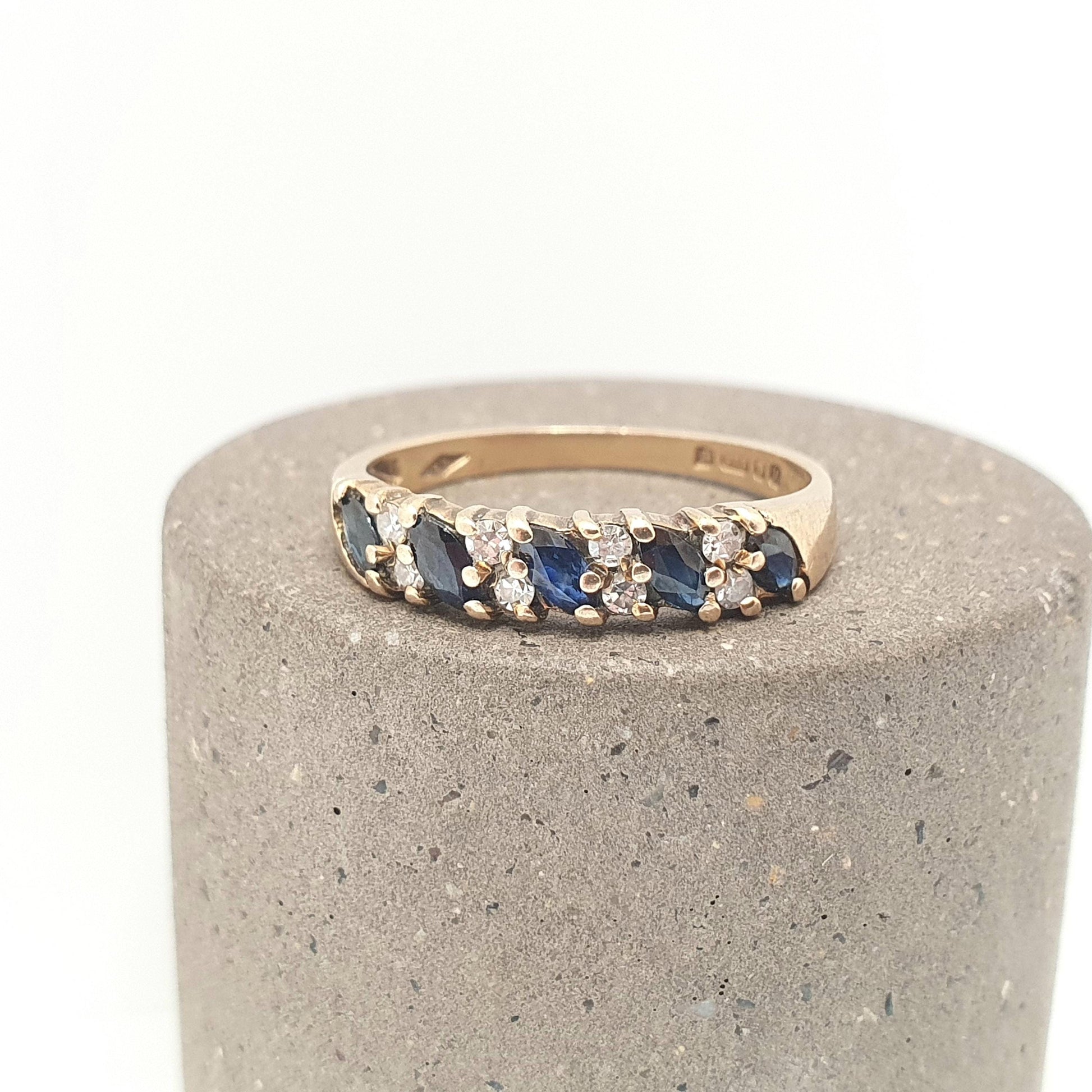 Vintage 9k Gold Diamond & Sapphire Ring Marquise Cut Solid 9ct 375 Hallmark Genuine Gemstone Womens Jewelry Jewellery
