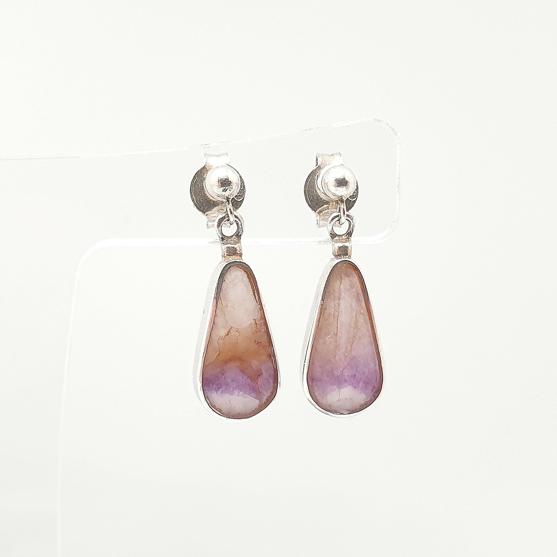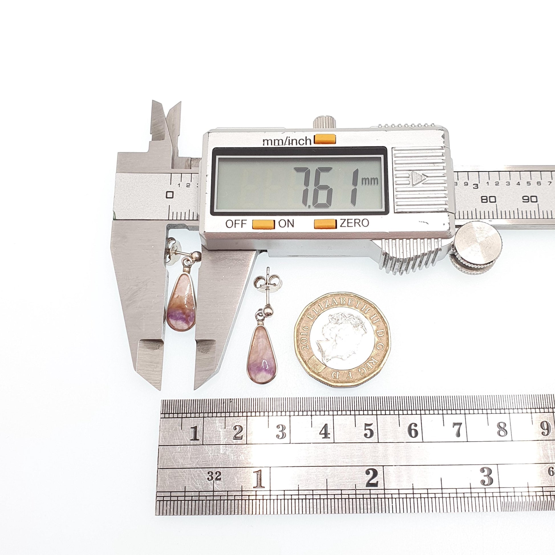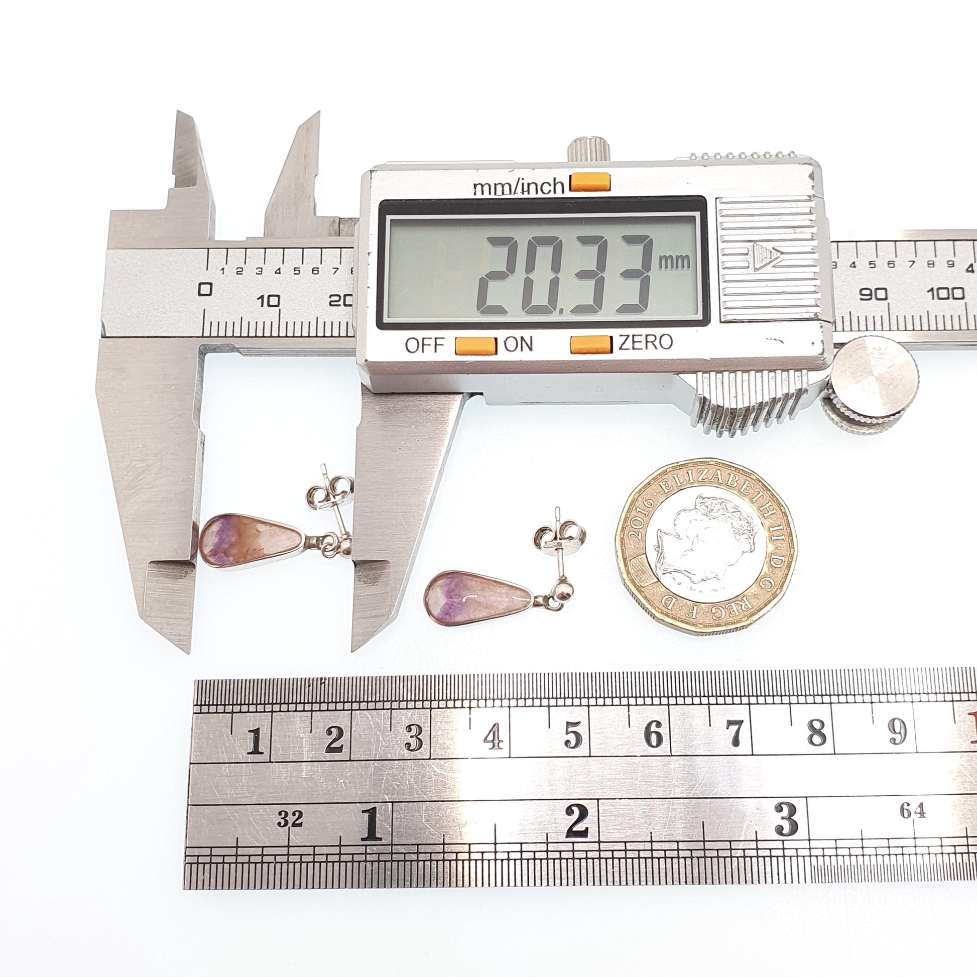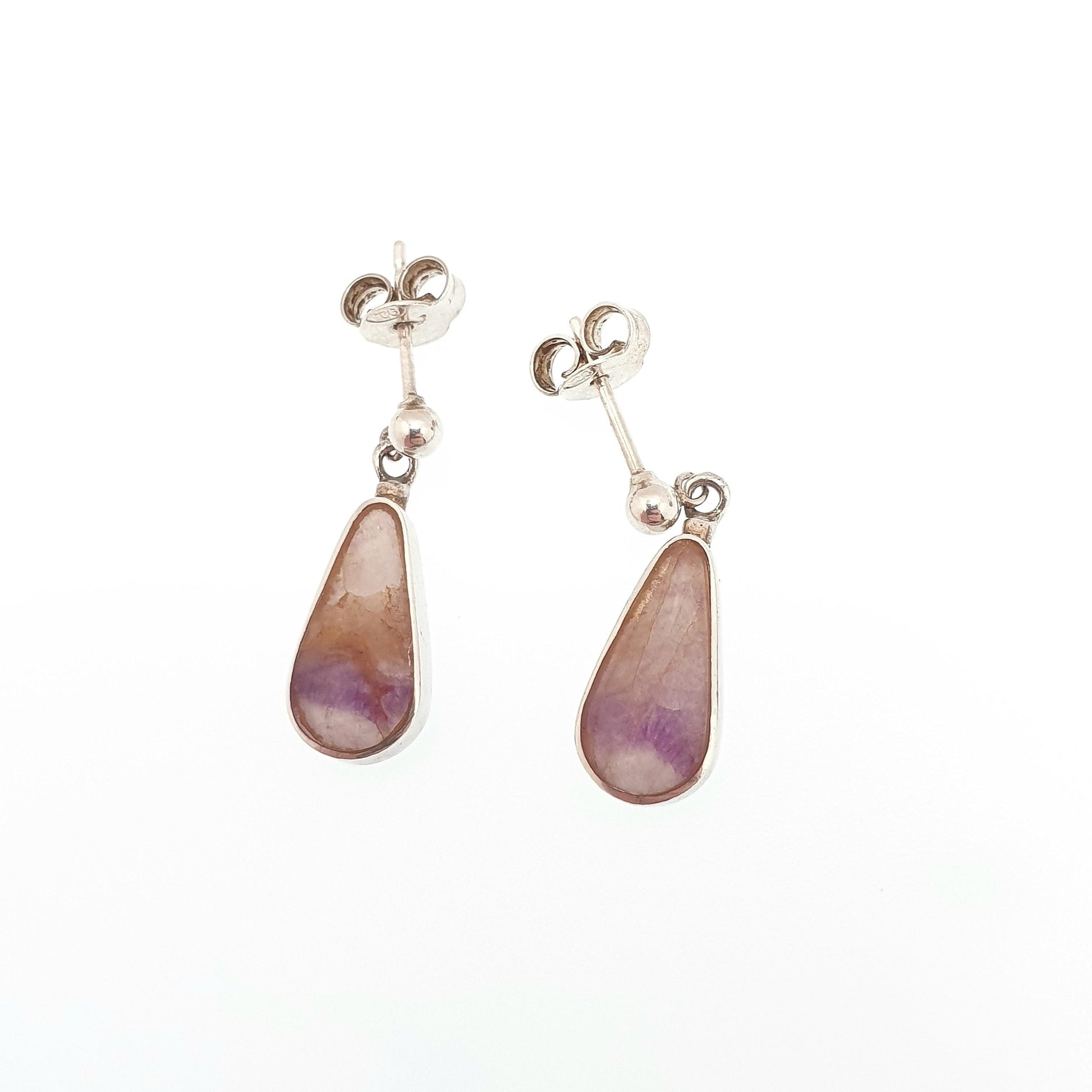 DESCRIPTION: A stunning pair of vintage sterling silver and genuine blue john earrings. Blue john is an extremely rare mineral and can only be found in Derbyshire in the UK (not far from me), it is in fact Britain's rarest mineral. The earrings are stamped "SIL" for silver. They weigh a combined total of approx. 3.24g and the size dimensions are in the later photos.