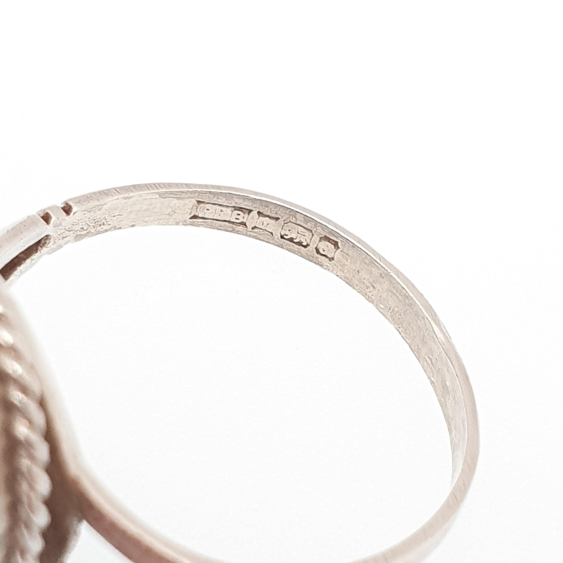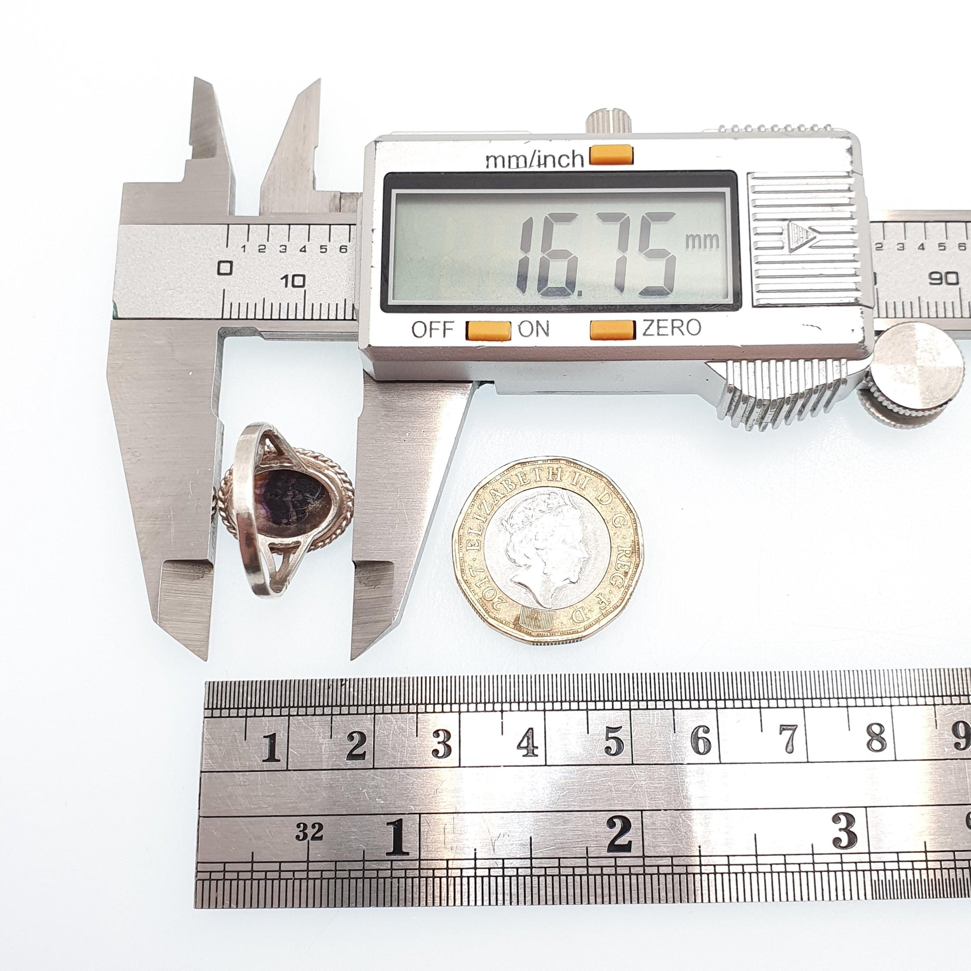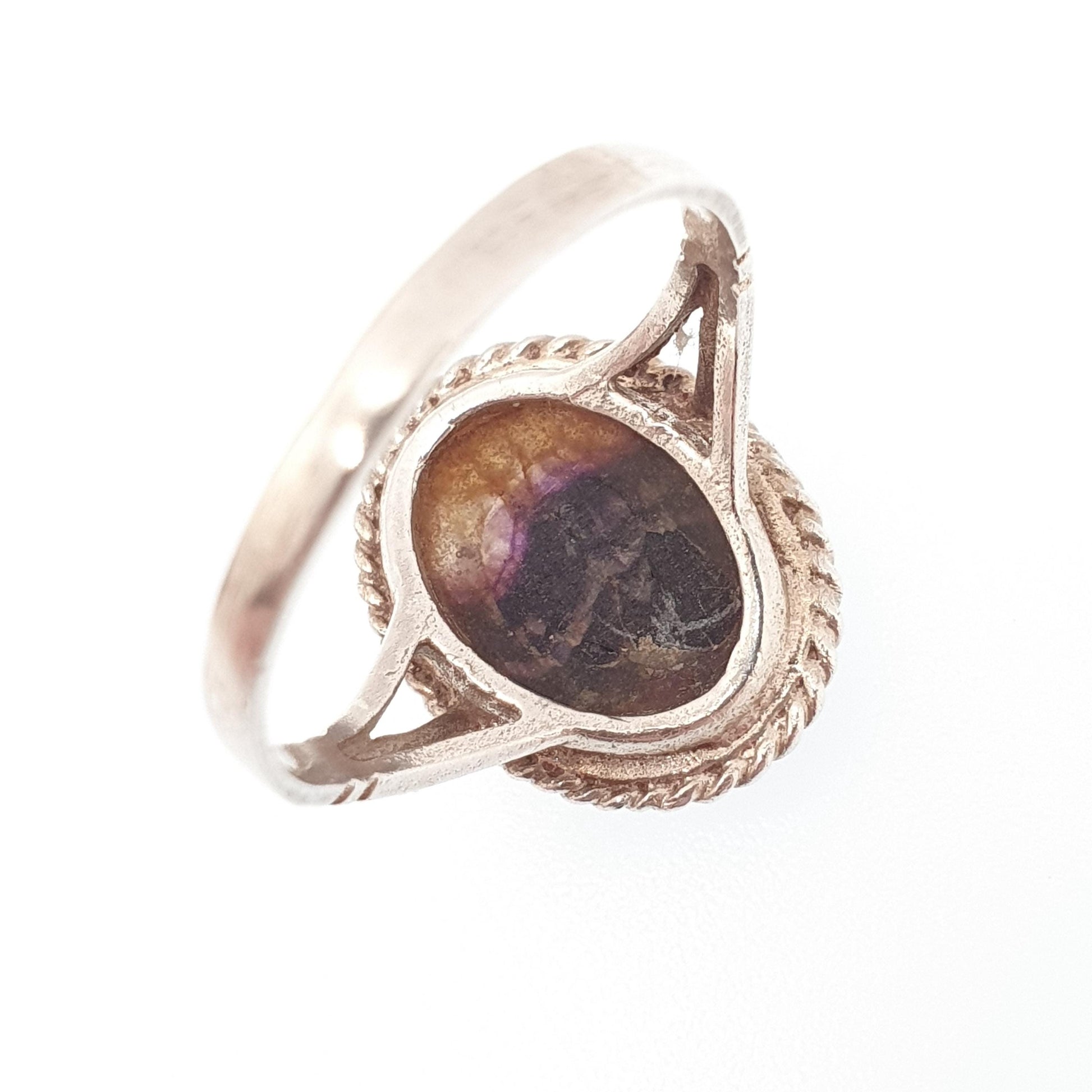 DESCRIPTION: A lovely genuine vintage sterling silver and genuine blue john gemstone ring. Blue john is an extremely rare mineral and can only be found in Derbyshire in the UK, it is in fact Britain's rarest mineral. The ring sizes at approx. UK Q or US 8.25, weighs approx. 3.09g and is fully hallmarked for sterling silver, dating to 1967. The blue john has an old glue repair on the rear, see pictures/video.