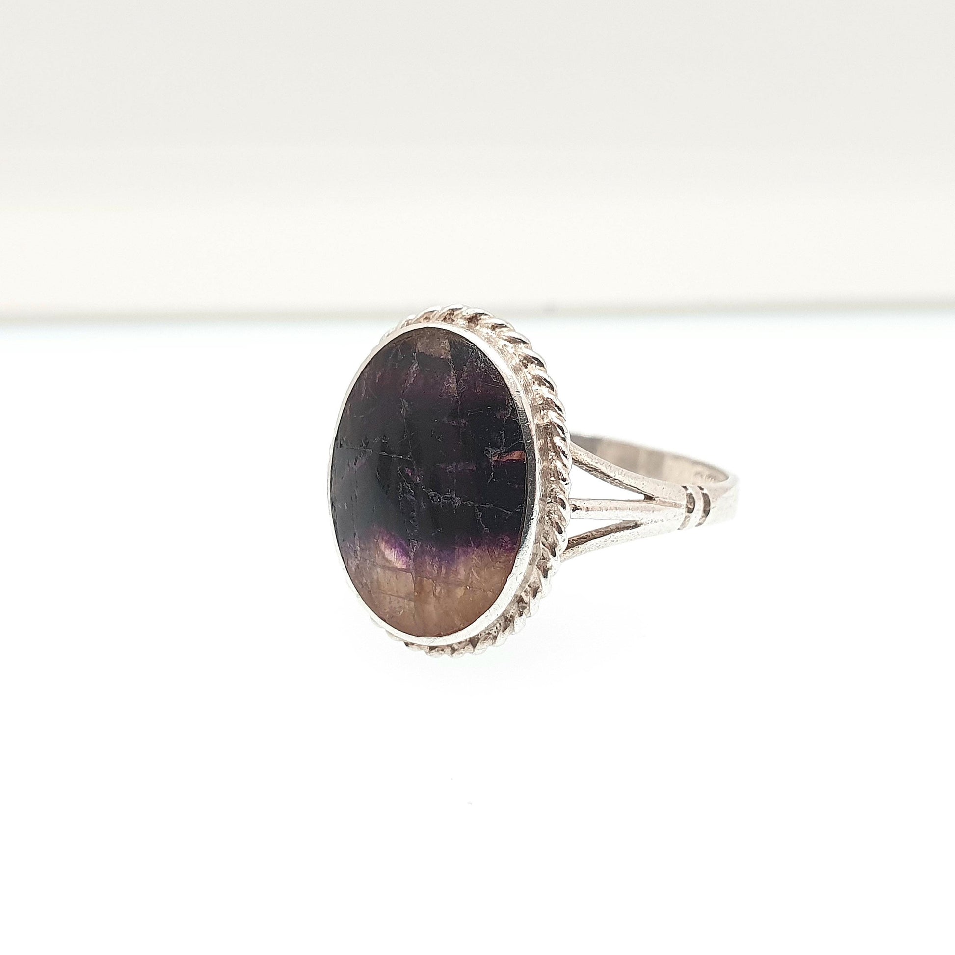 Vintage Blue John Sterling Silver Ring Signet Cabochon Oval 1967 Hallmark Fluorite Bleu Jaune Rare Gemstone Jewelry Jewellery