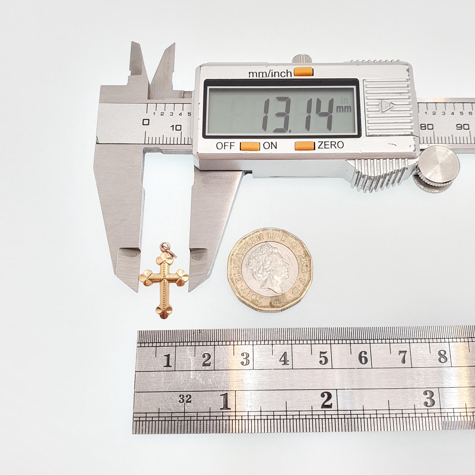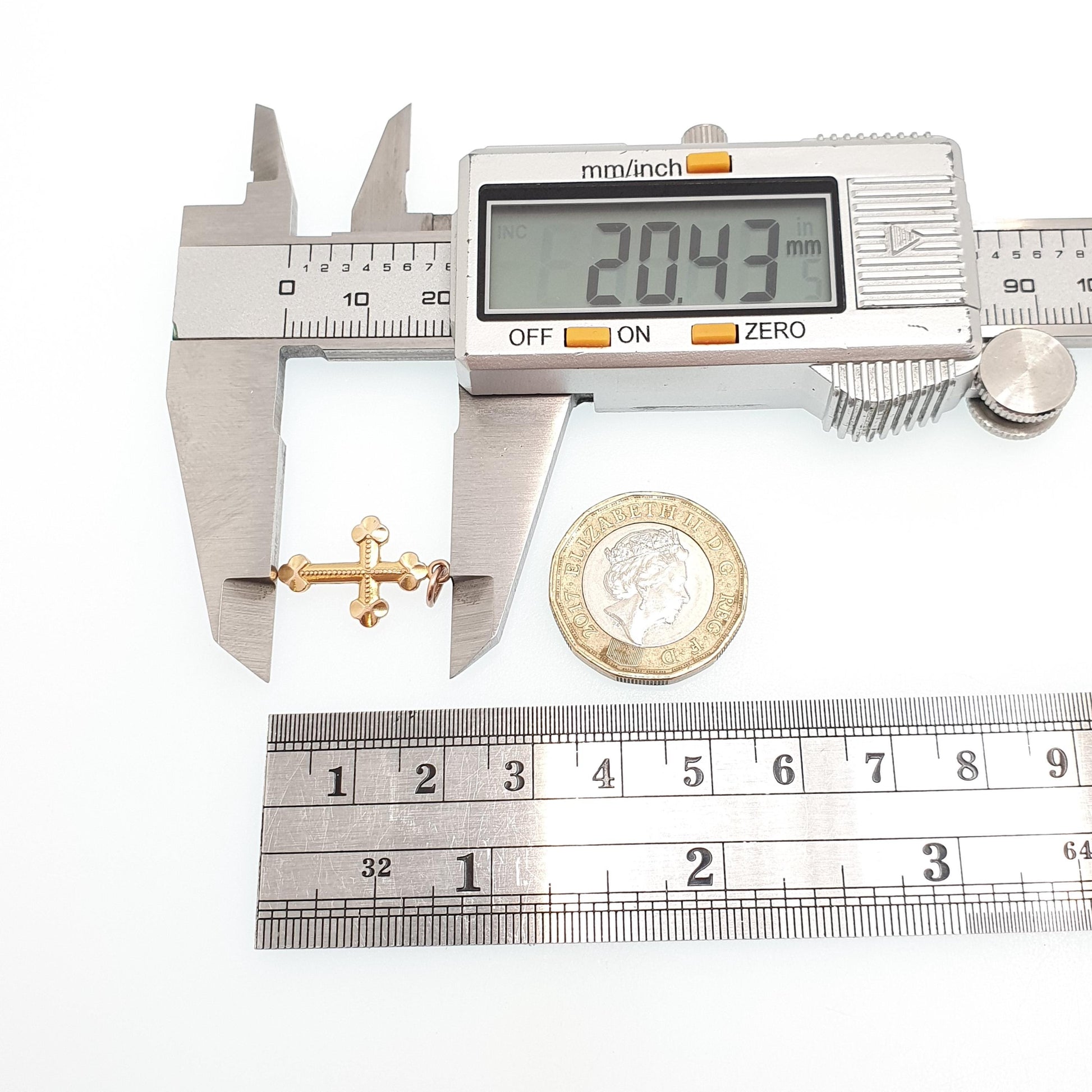 Vintage GEORG JENSEN 9ct 9k Gold Crucifix Charm Bulbed Cross Pendant Small Solid 9kt Necklace Jewellery Jewelry