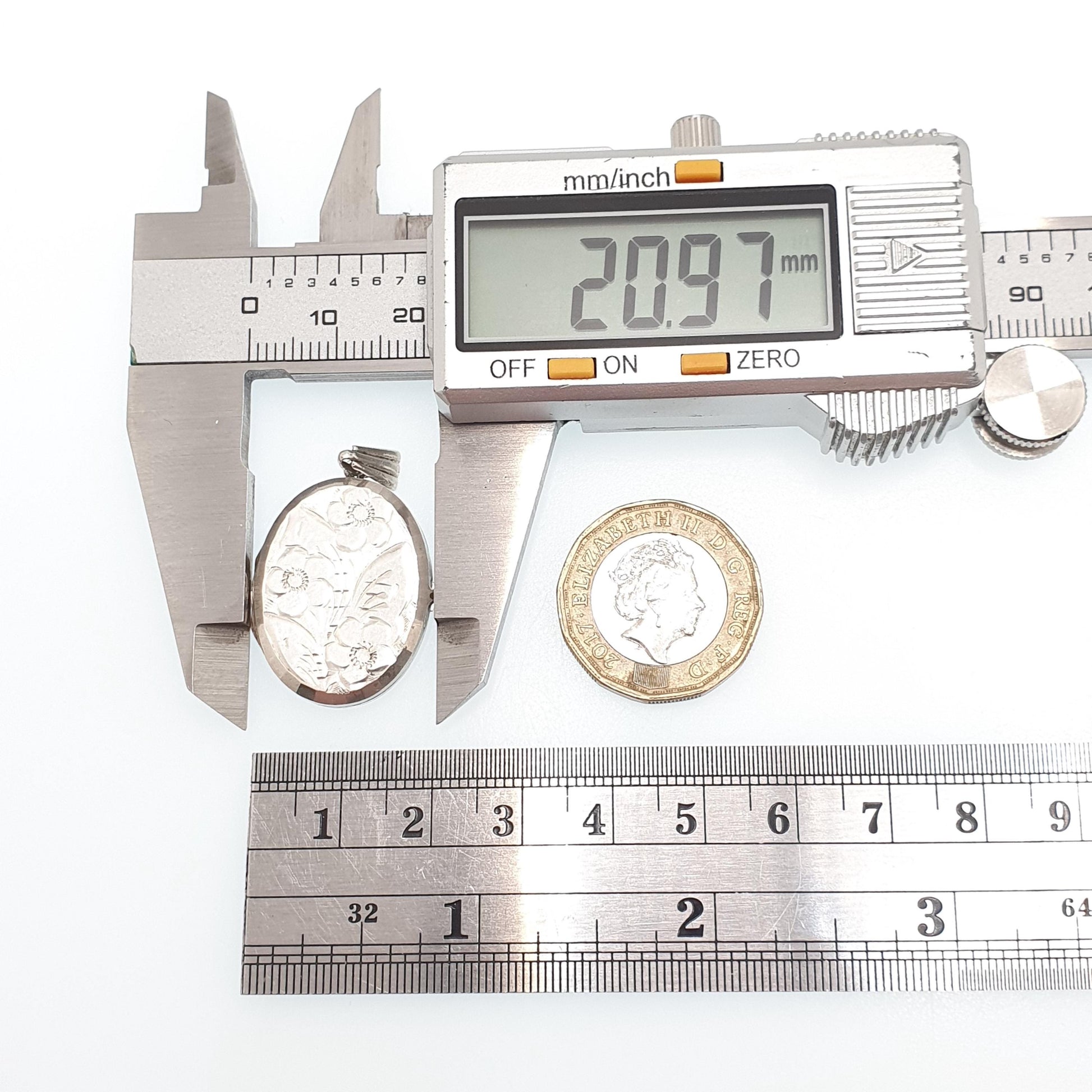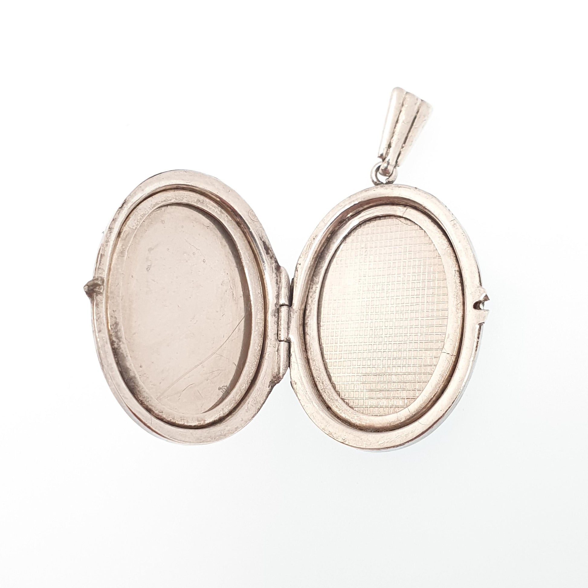 DESCRIPTION: A genuine Georg Jensen 1970s vintage sterling silver oval locket. The locket has a embossed front and plain rear. It's stamped "SILVER" and "GJ Ltd" which is Georg Jensen's makers mark. It has both metal picture retaining shims and clicks shut. The size dimensions are in the later photos and the items weighs approx. 4.91g.