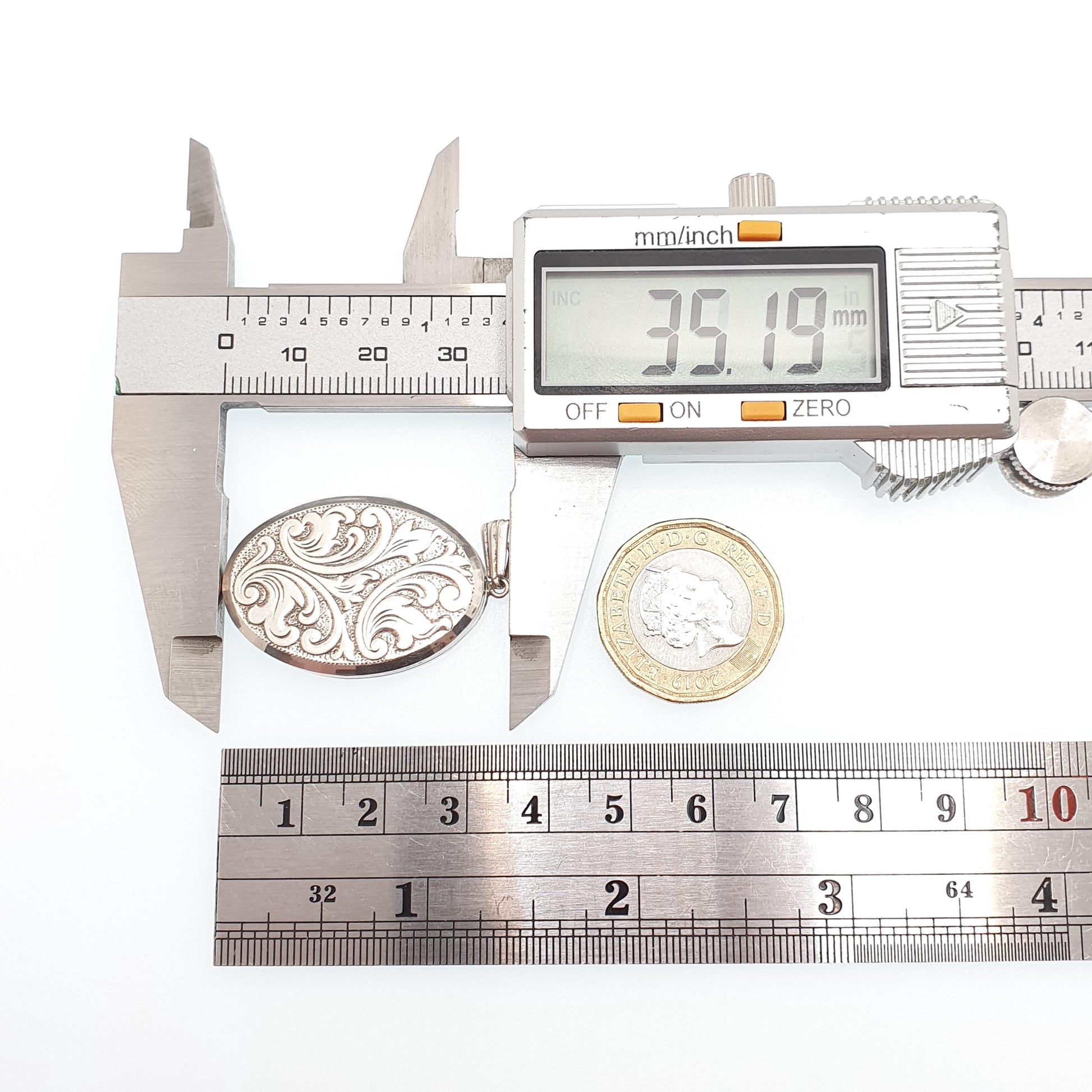 DESCRIPTION: A genuine Georg Jensen 1970s vintage sterling silver oval locket. The locket has a embossed front and plain rear. It's stamped "SILVER" and "GJ Ltd" which is Georg Jensen's makers mark. It has both metal picture retaining shims and clicks shut, there is a small gap on the side when the faces meet. The size dimensions are in the later photos and the items weighs approx. 7.37g. It has some black patina in areas as to be expected with a vintage silver item.