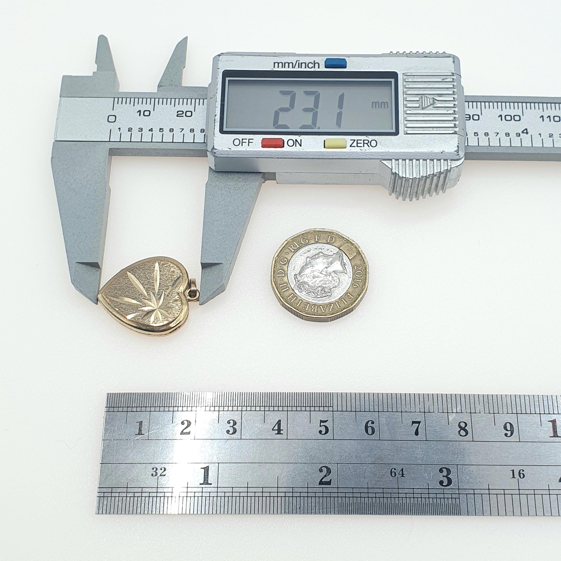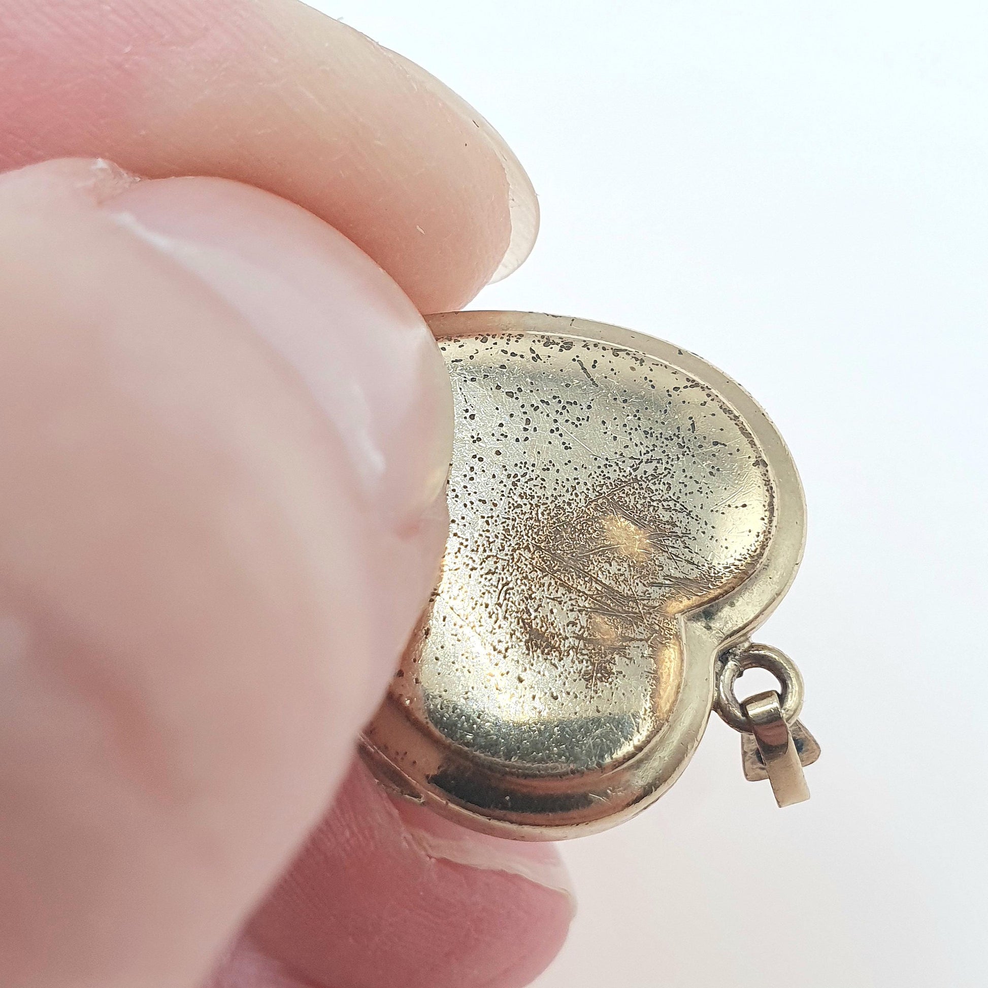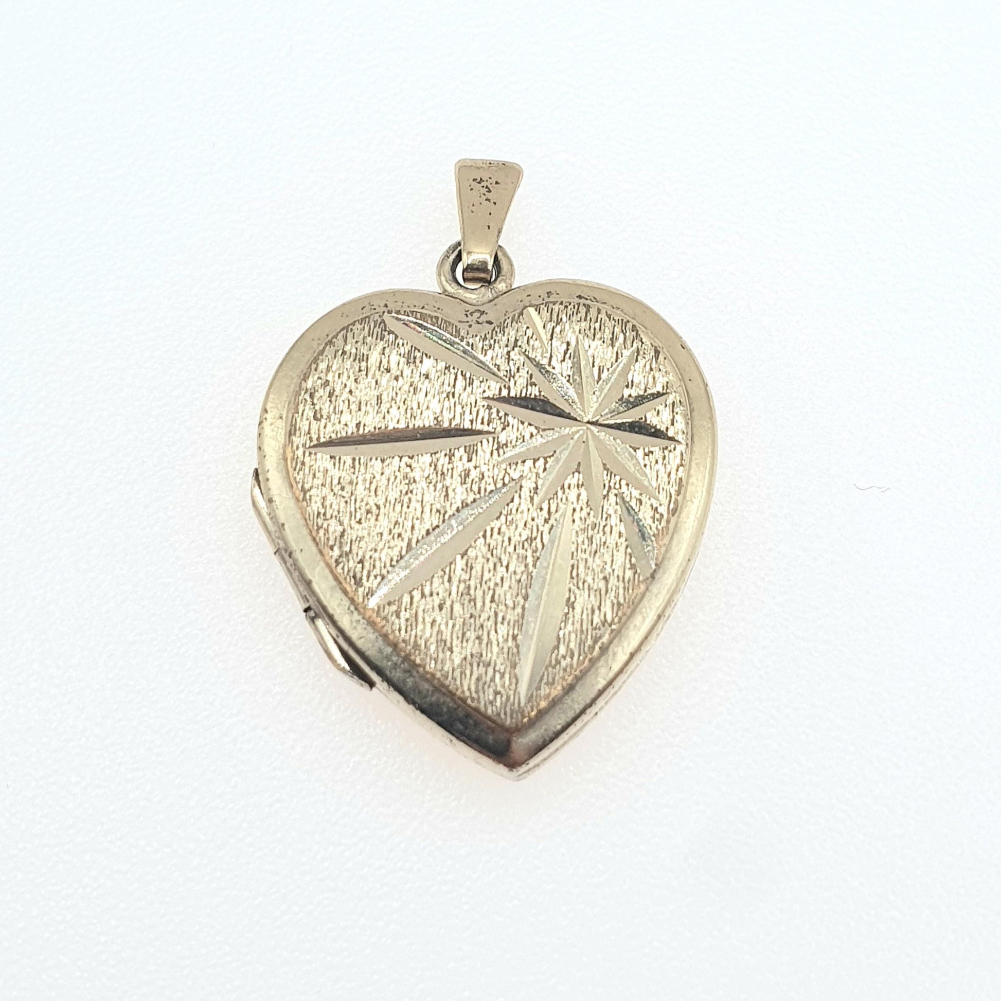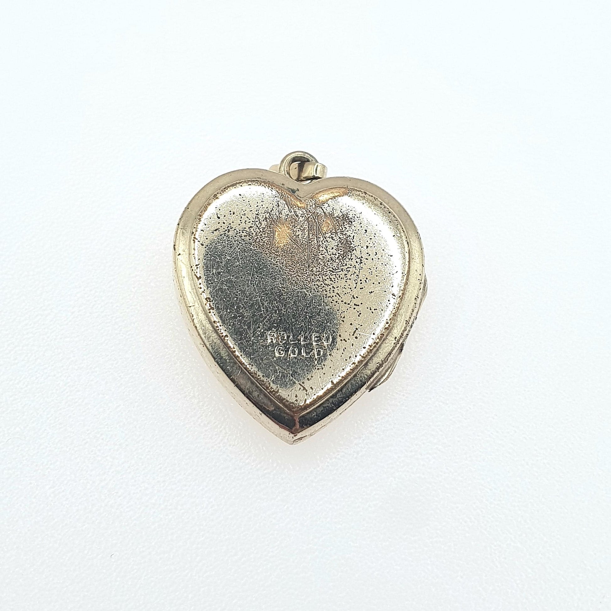 DESCRIPTION: A beautiful vintage rolled gold locket, in a heart shape with engraved details in a starburst design. It opens/closes well and is stamped "ROLLED GOLD". It weighs 3.42g and the size dimensions in the latter photos. PLEASE NOTE: As to be expected with age and use, the rolled gold finish has worn with age and use (see pictures/video), mainly on the rear.
