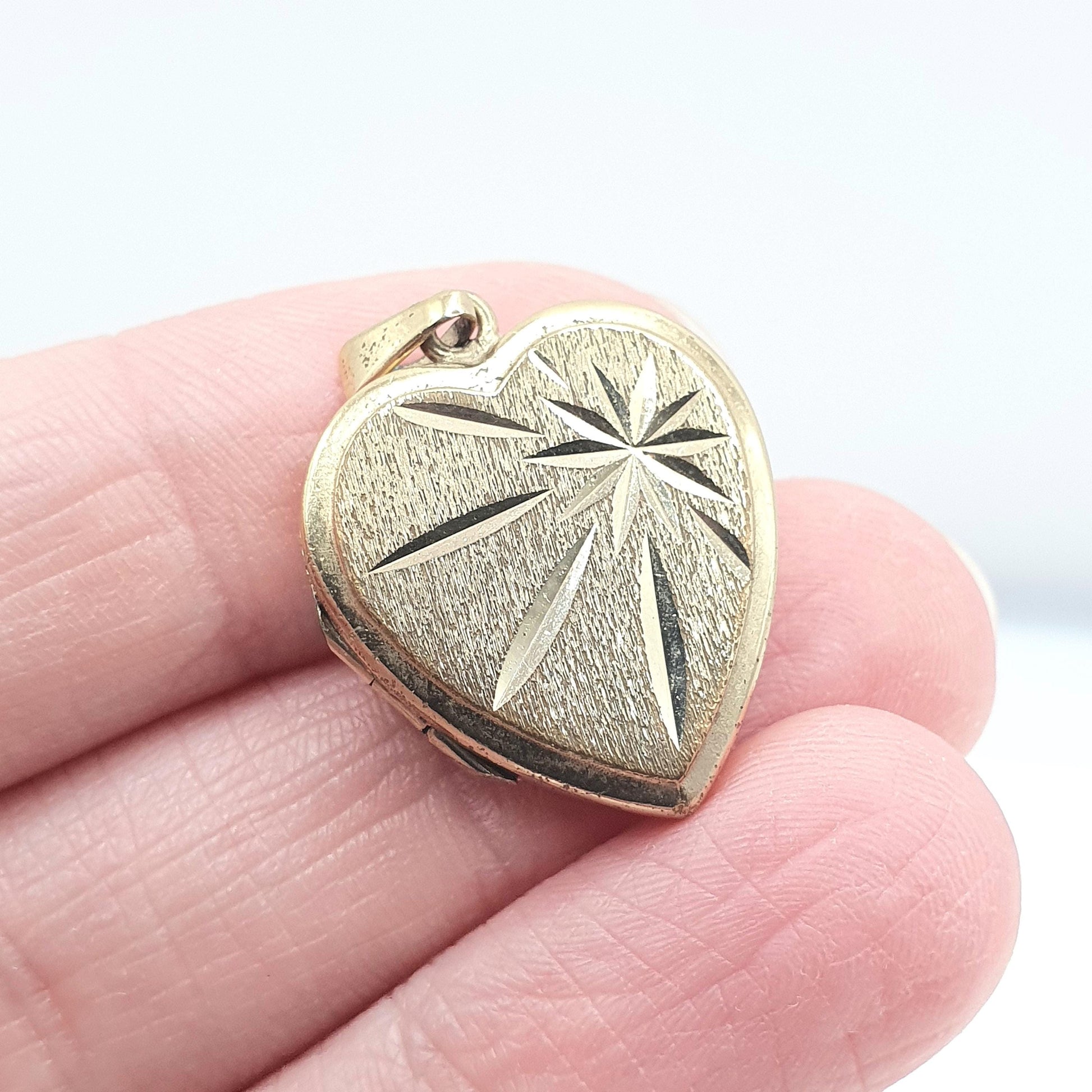 Vintage Rolled Gold Heart Locket Star Engraved Love Gift Necklace Pendant Womens Jewellery Jewelry Engraved Gold Filled Romantic