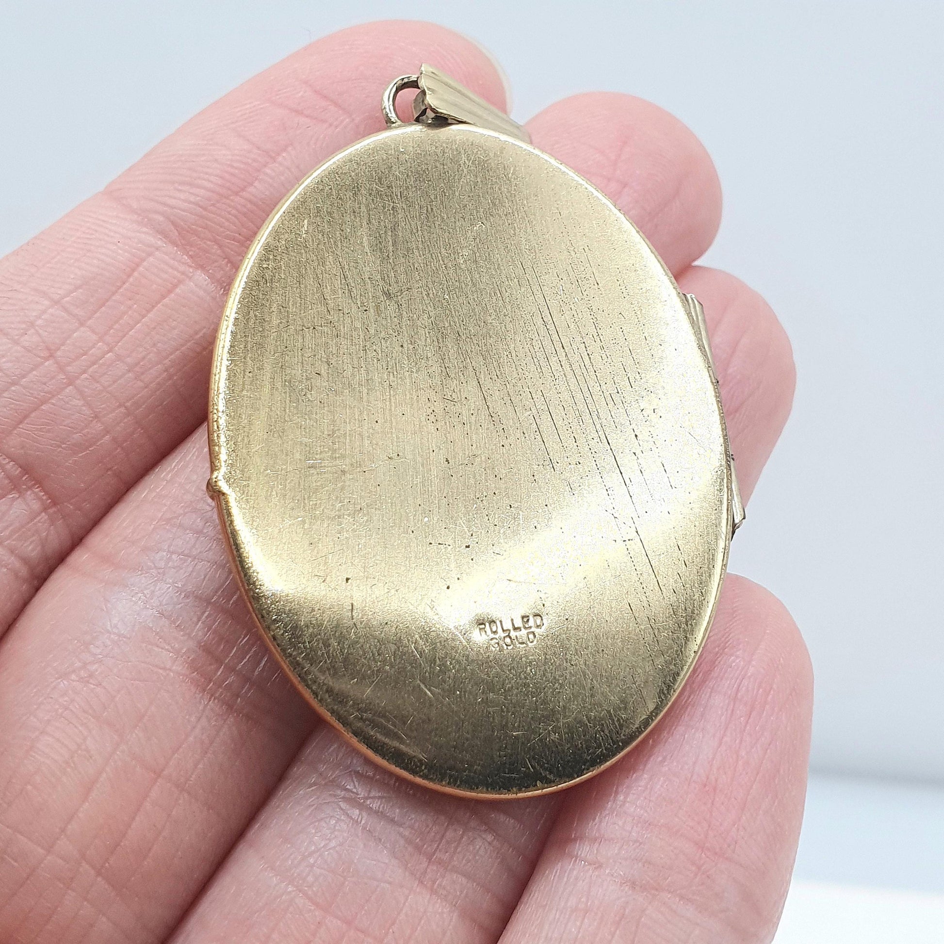 Vintage Rolled Gold Oval Locket Large Flower Engraved Gold Filled Womens Pendant Necklace Ladies Jewellery Jewelry