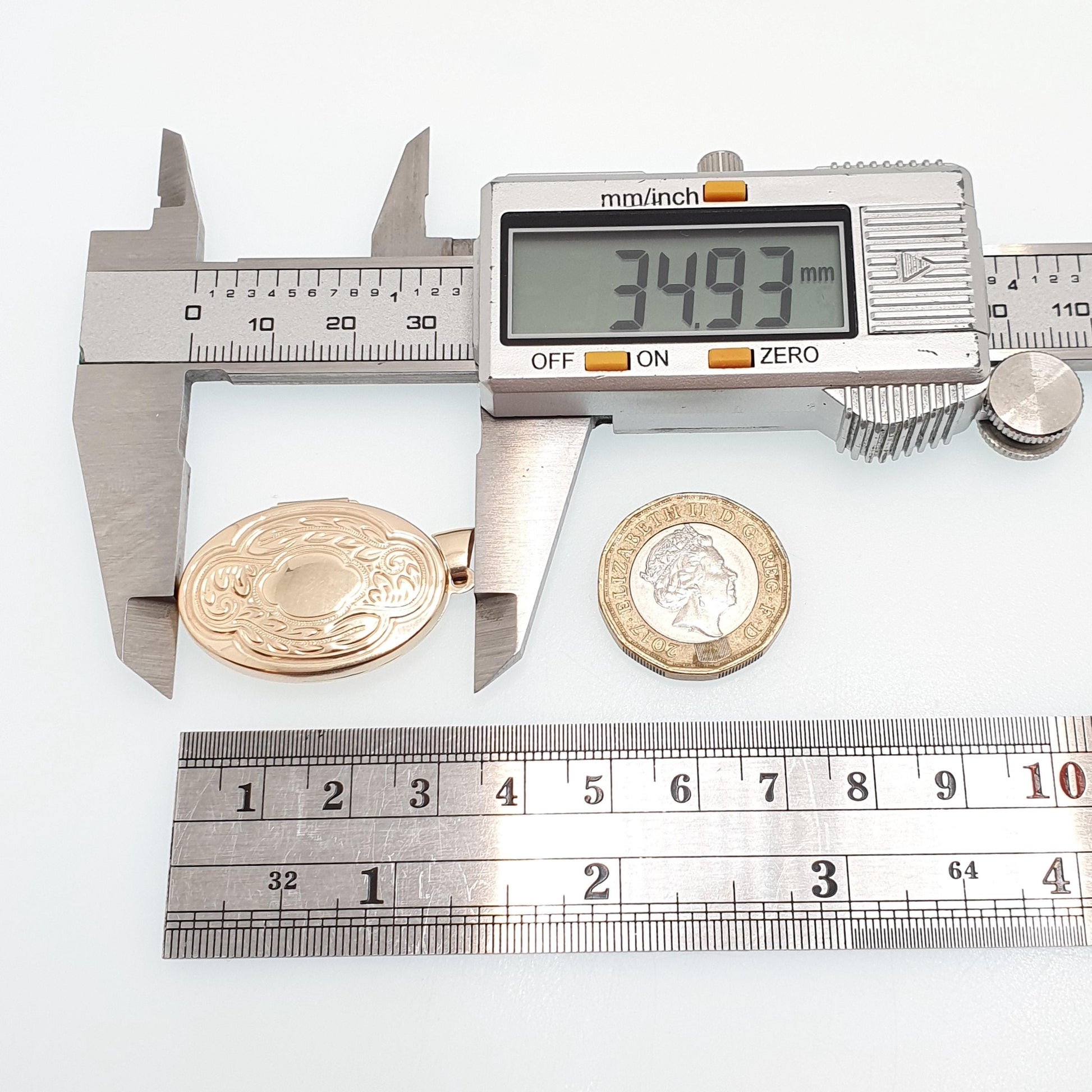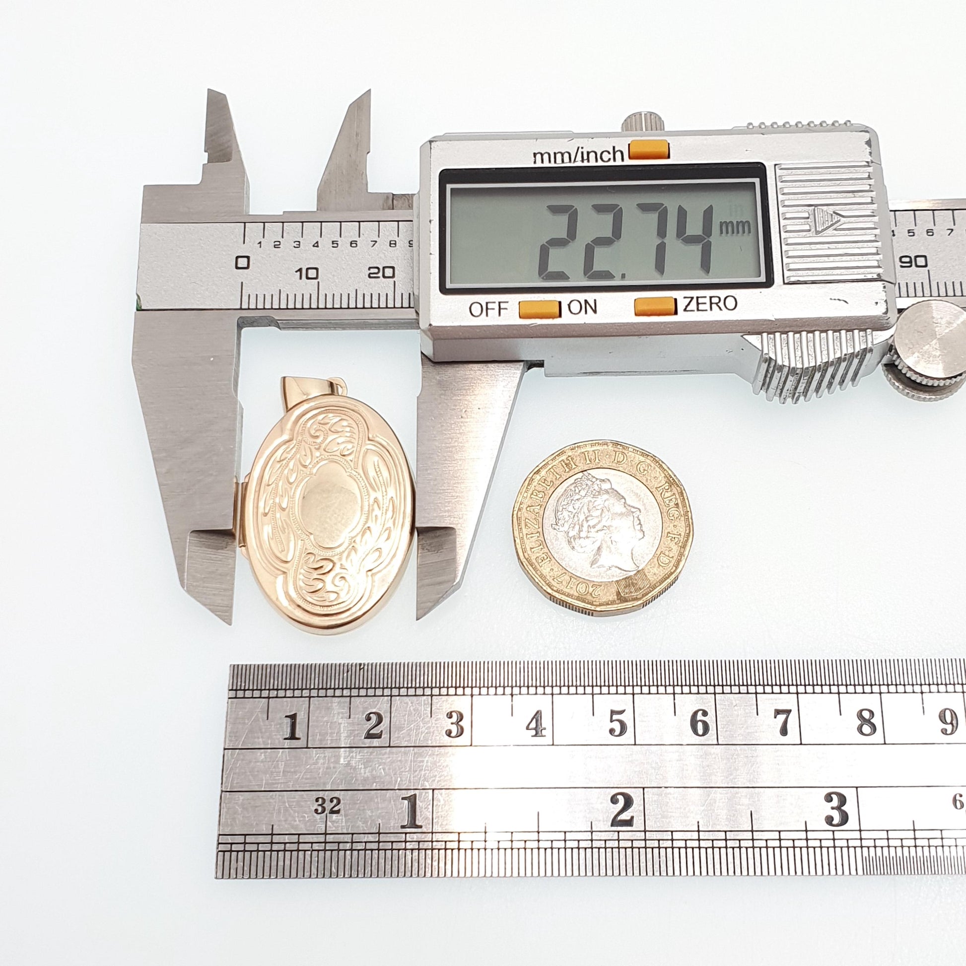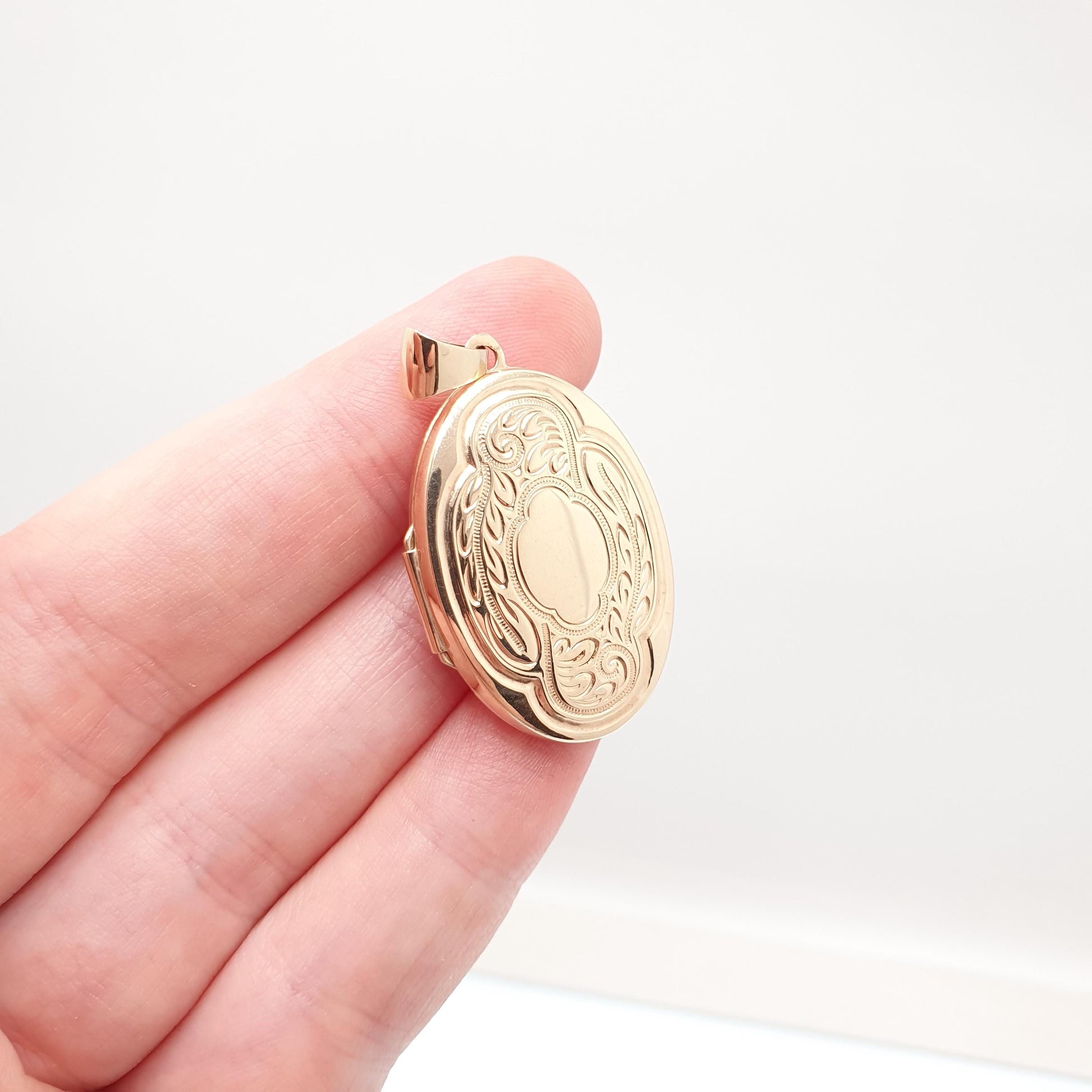 Vintage Solid 9ct 9k Gold Locket Large Oval All 375 9kt Gold Necklace Pendant Engraved Retro Jewelry Womens Jewellery