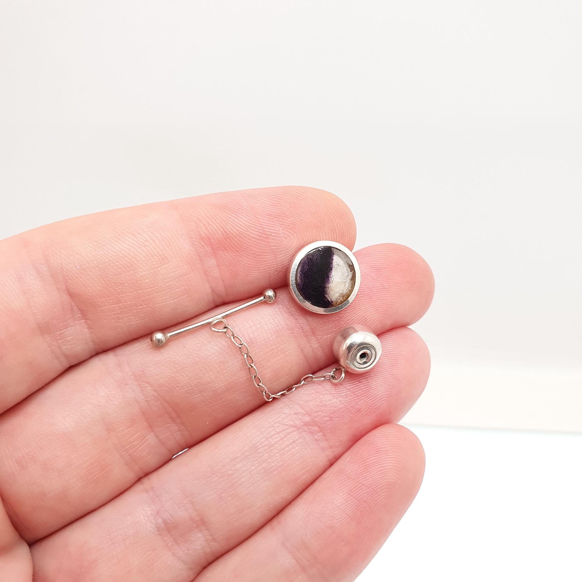 Vintage Solid Silver Blue John Lapel Pin Bleu Jaune Fluorite 1960s Blazer Suit Jacket Vintage Mens Gents Jewellery Jewelry