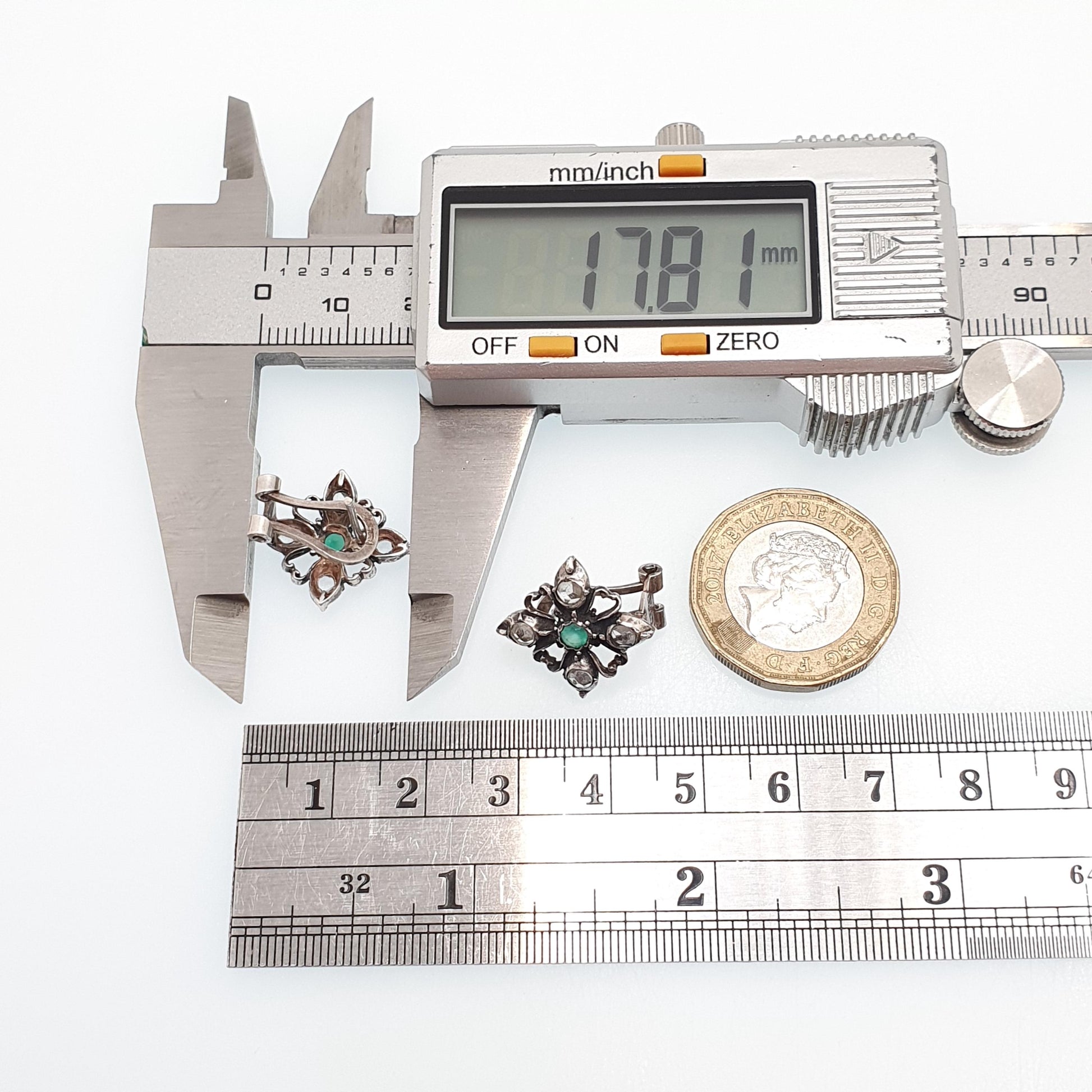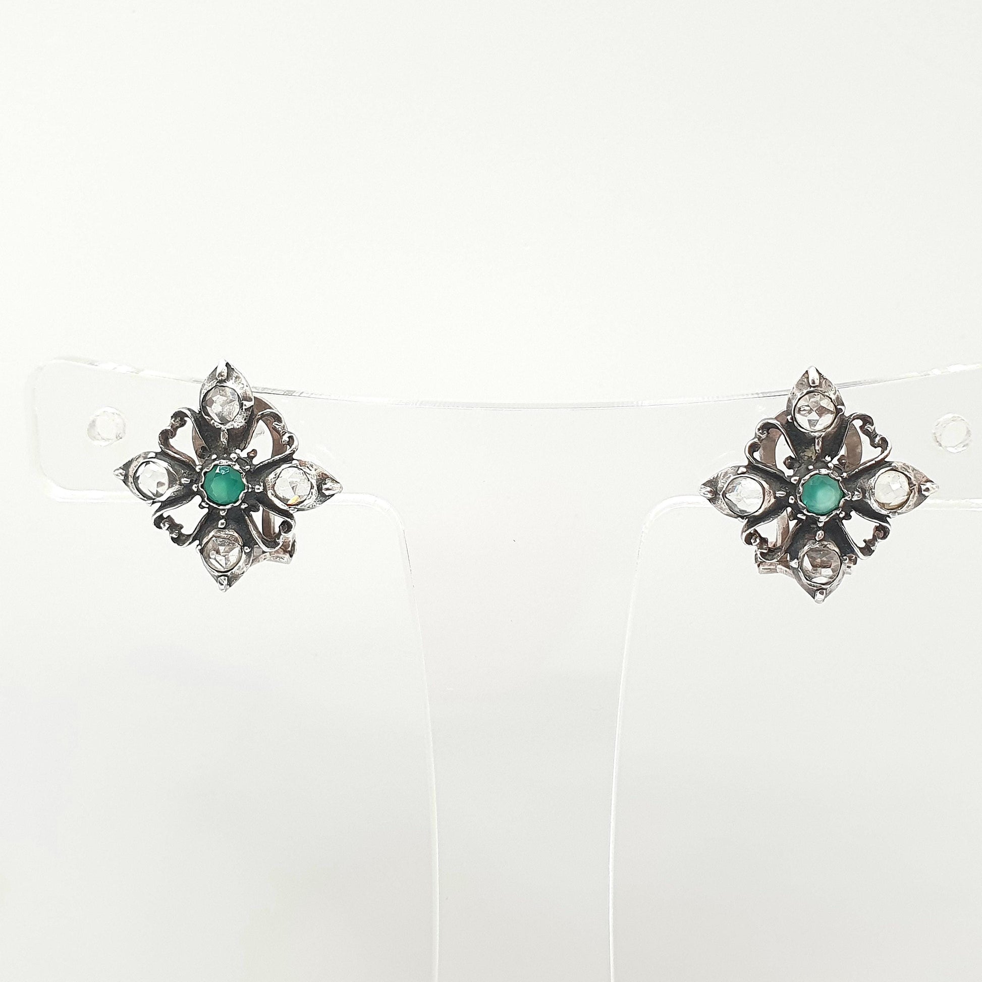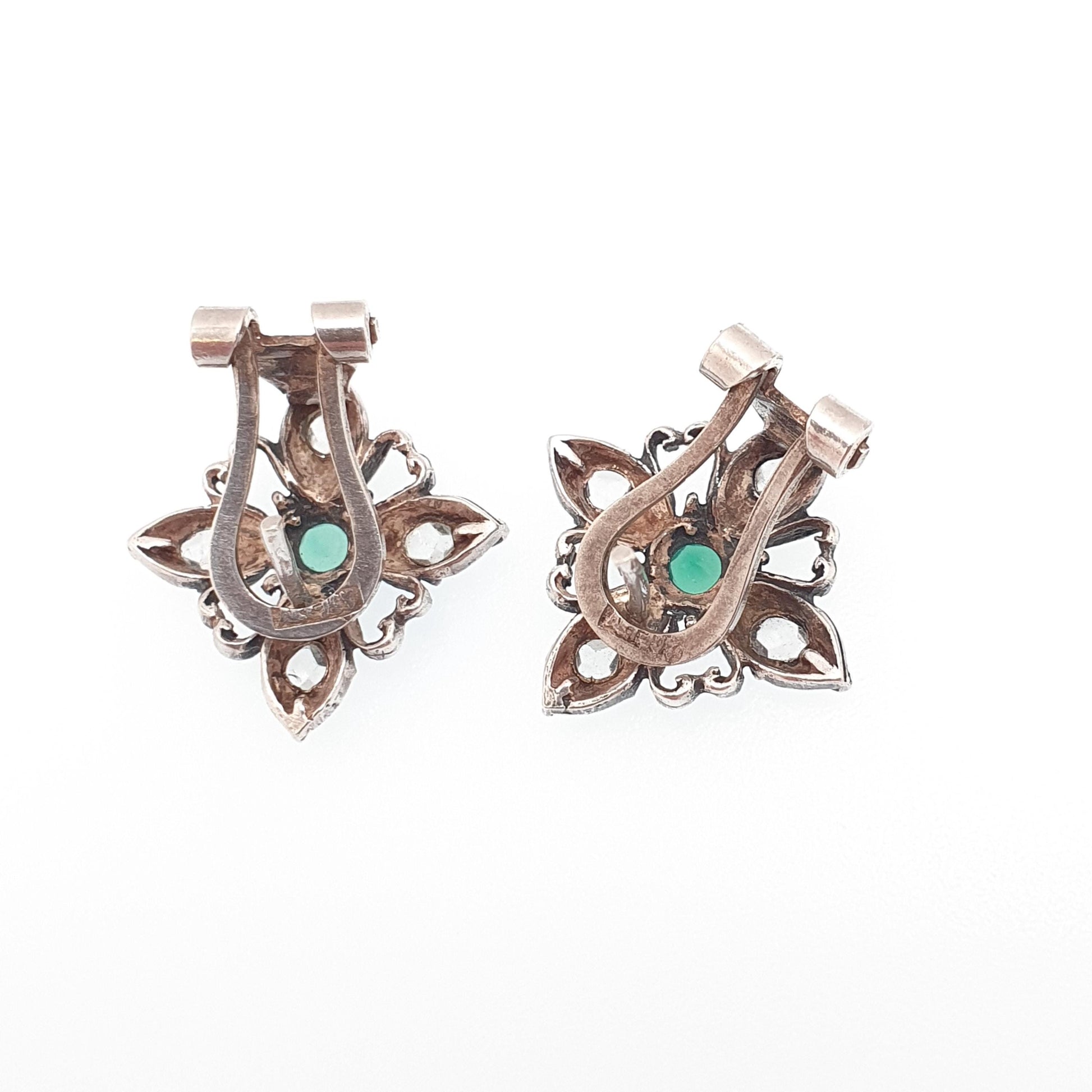 DESCRIPTION: A stunning pair of vintage solid silver earrings, adorned with genuine emeralds and white spinels (100% tested). They weigh a combined total of approx. 3.74g and the size dimensions are in the later photos. The safety clips open/close well. The earrings are made by a Spanish jewellery maker called ART-JOY (they no longer trade). ART-JOY specialised in reproducing Spanish Victorian era jewellery.