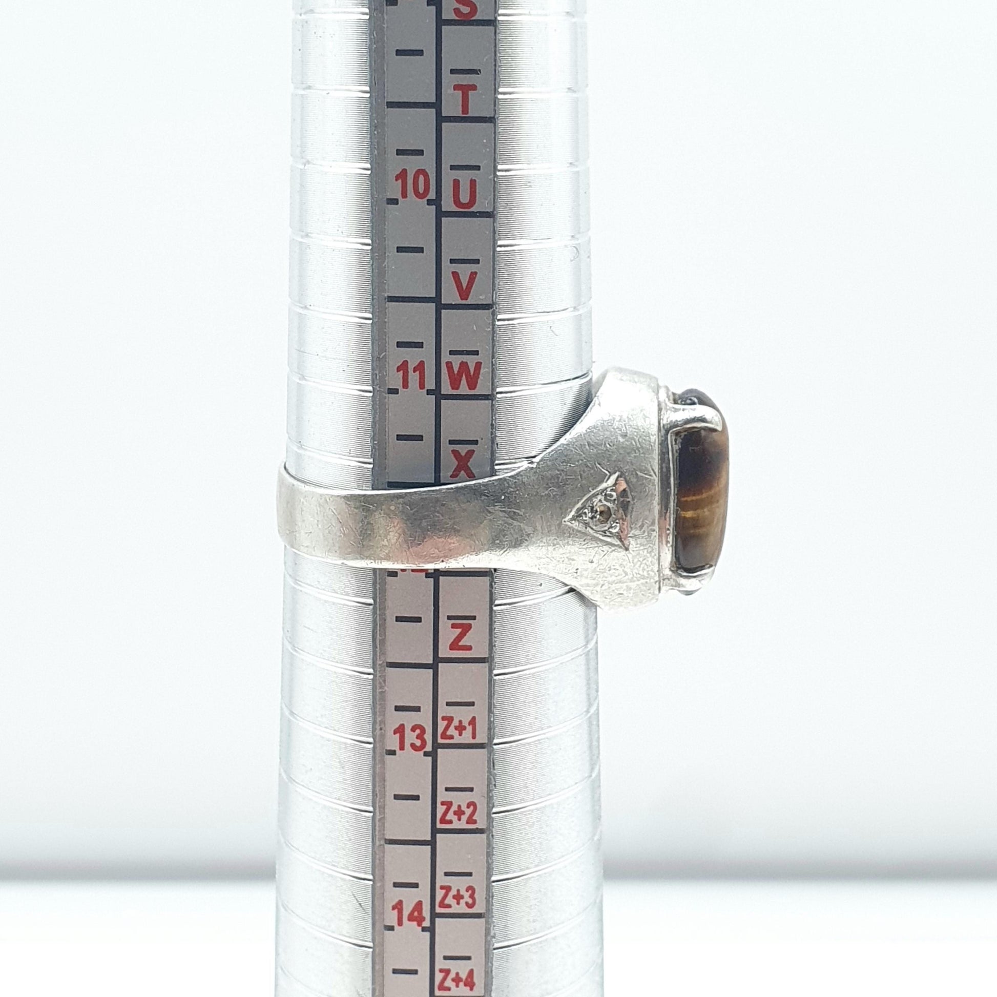 Vintage Solid Silver Tiger Eye & CZ Signet Ring Brown Gemstone Large Mens Womens Unisex Jewellery Jewelry