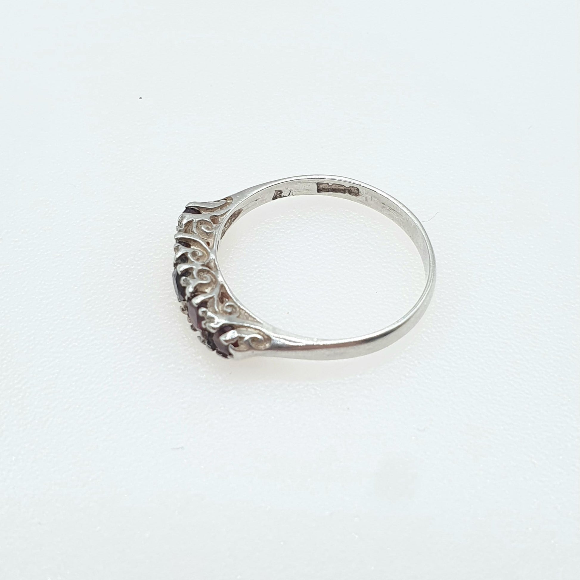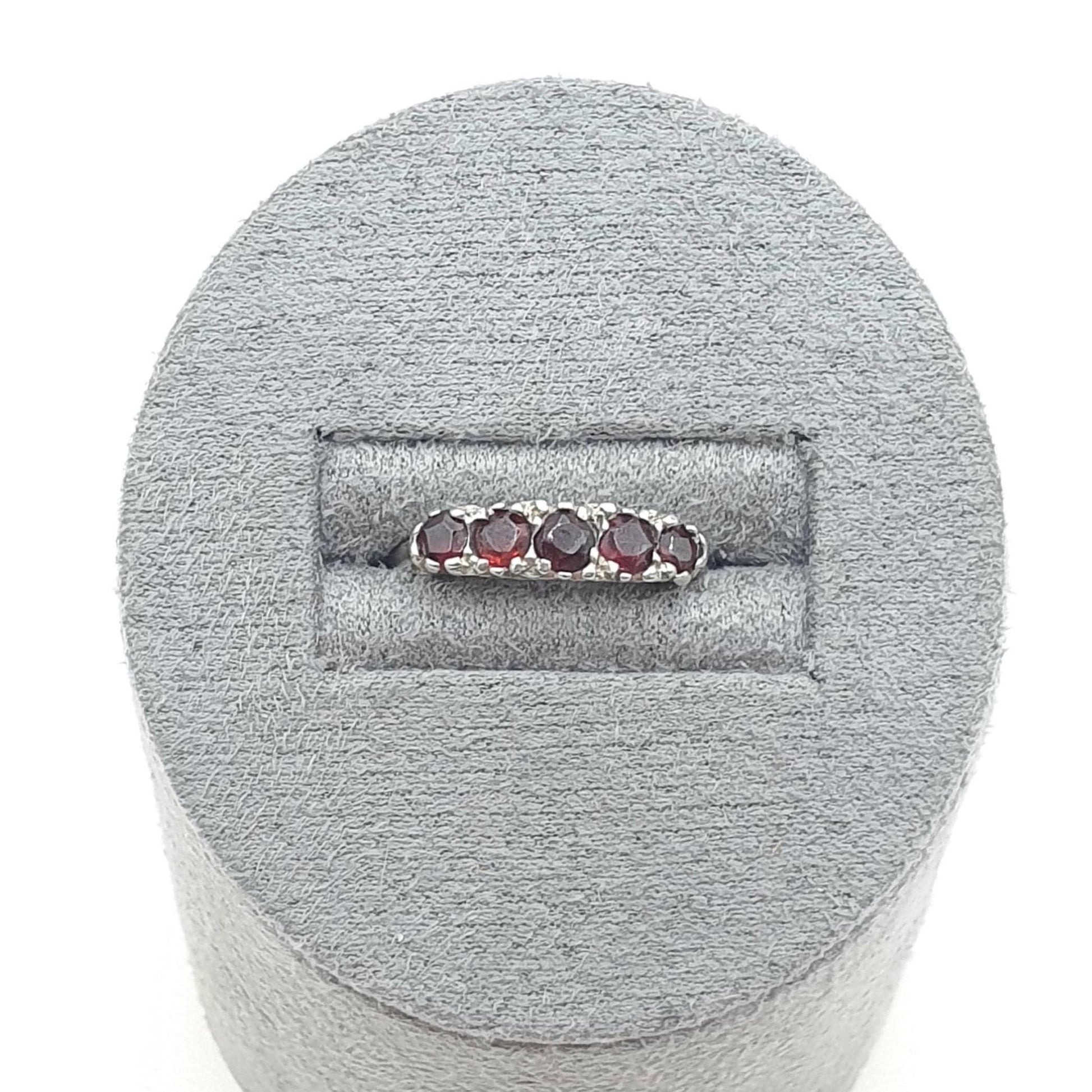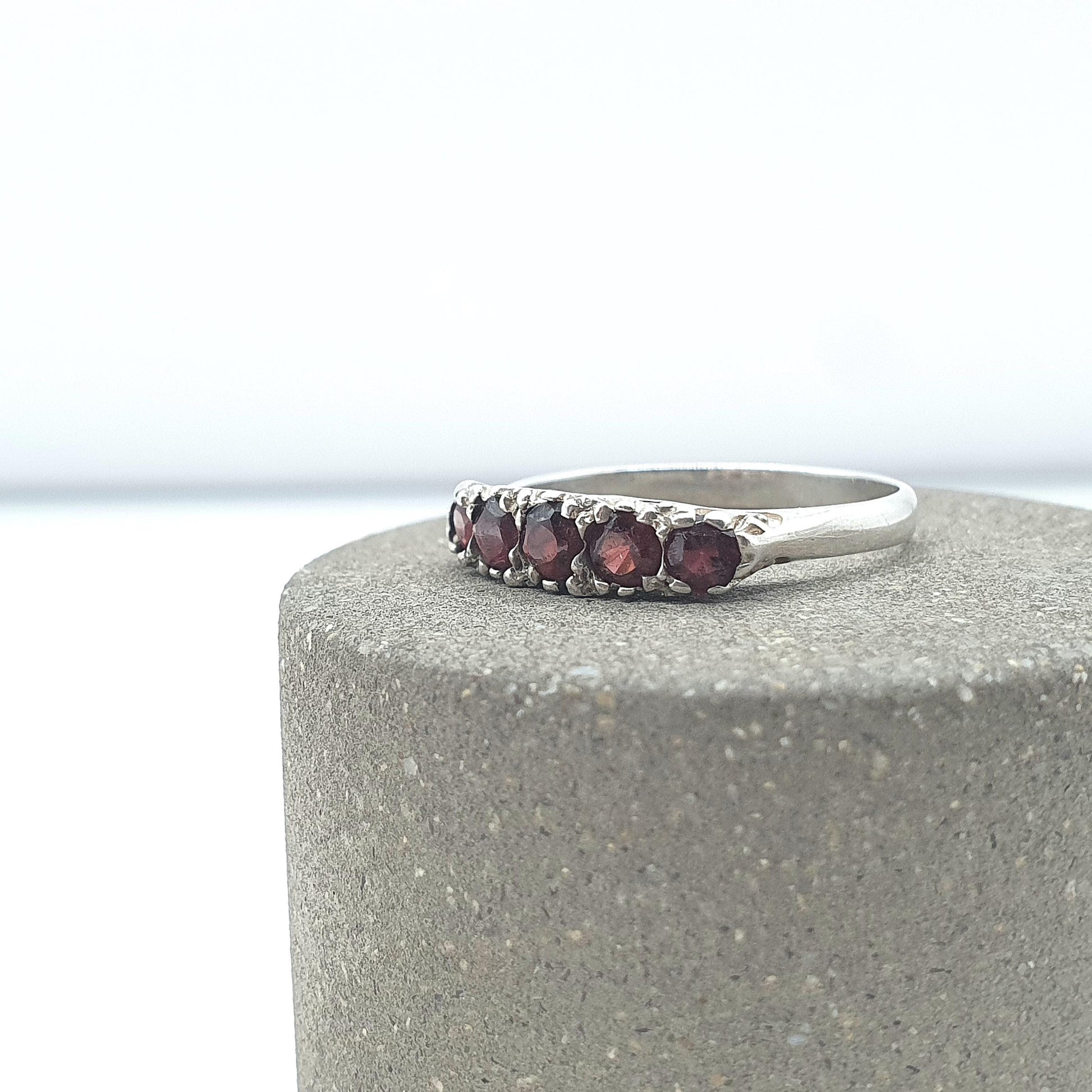 Vintage Sterling Silver Garnet Gypsy Ring Red Gemstone 5 Stone 1990s Retro Womens Jewellery Jewelry