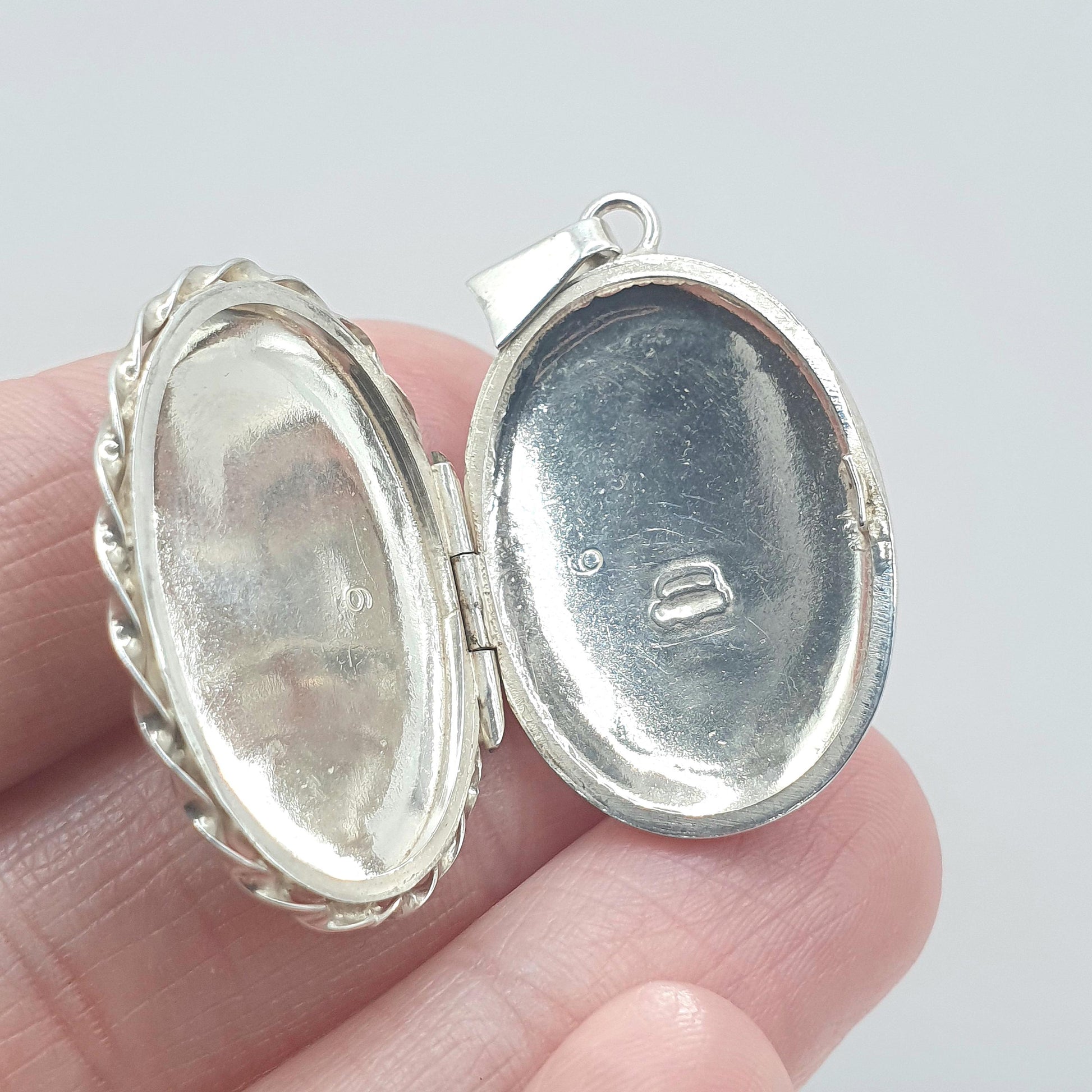 Vintage Sterling Silver Locket Rope Border Flower Hand Engraved Cute Oval Pendant Necklace Keepsake Jewelry Vintage Jewellery