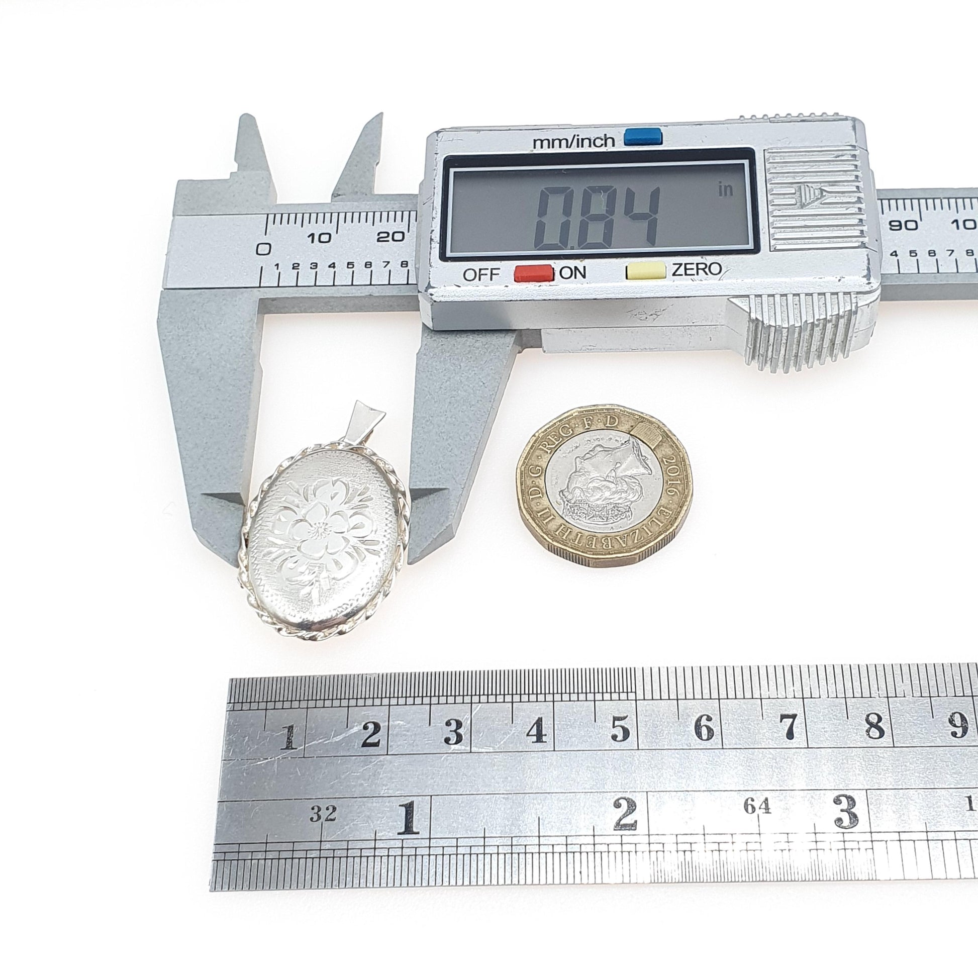 DESCRIPTION: A sweet vintage sterling silver locket, with a floral design on the face. The locket opens/closes well and it weighs approx. 4.41g. The size dimensions are in the latter photos and the item is hallmarked, dating back to 1986.