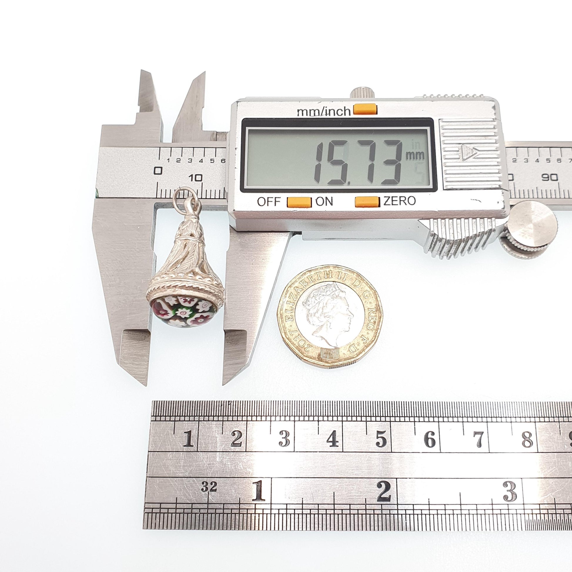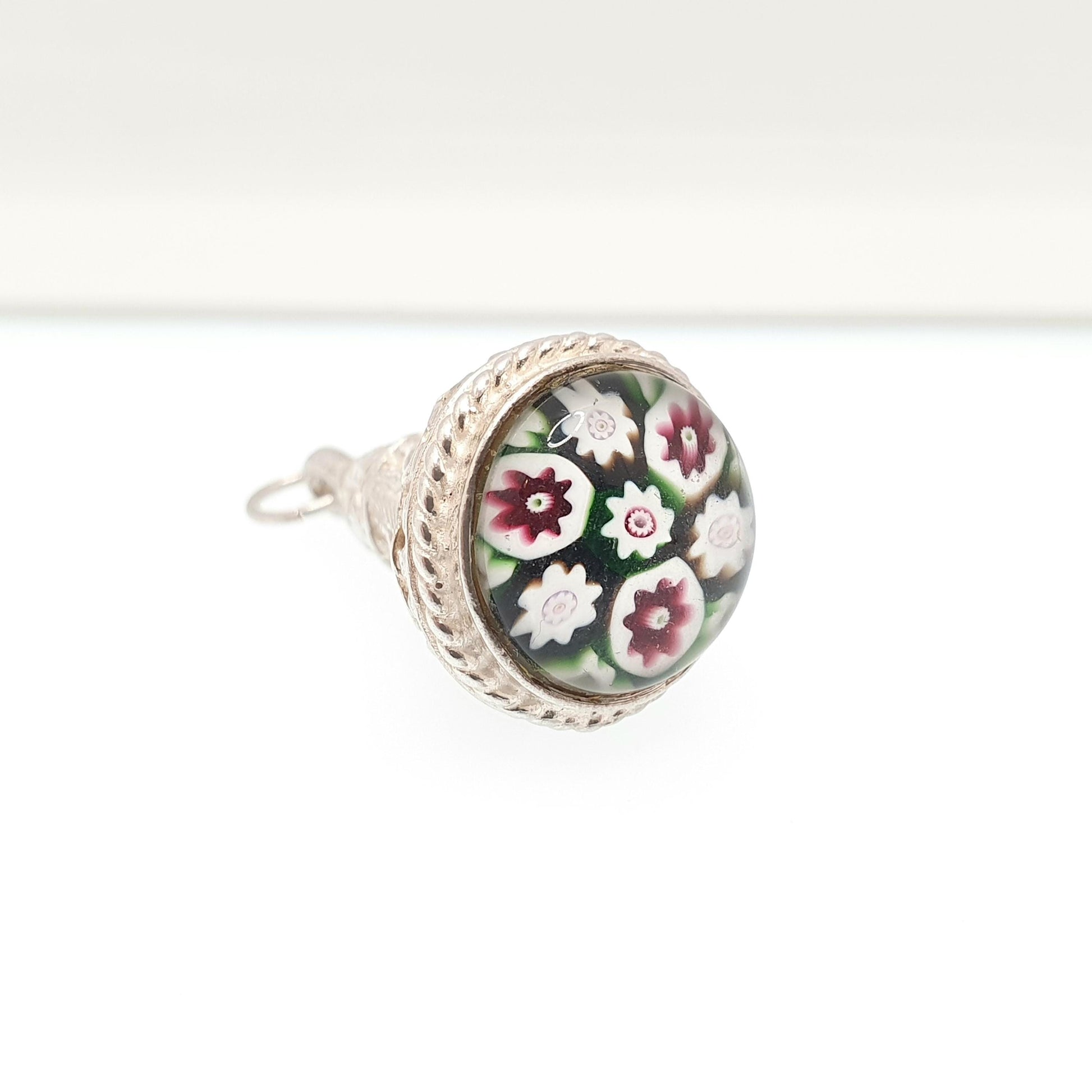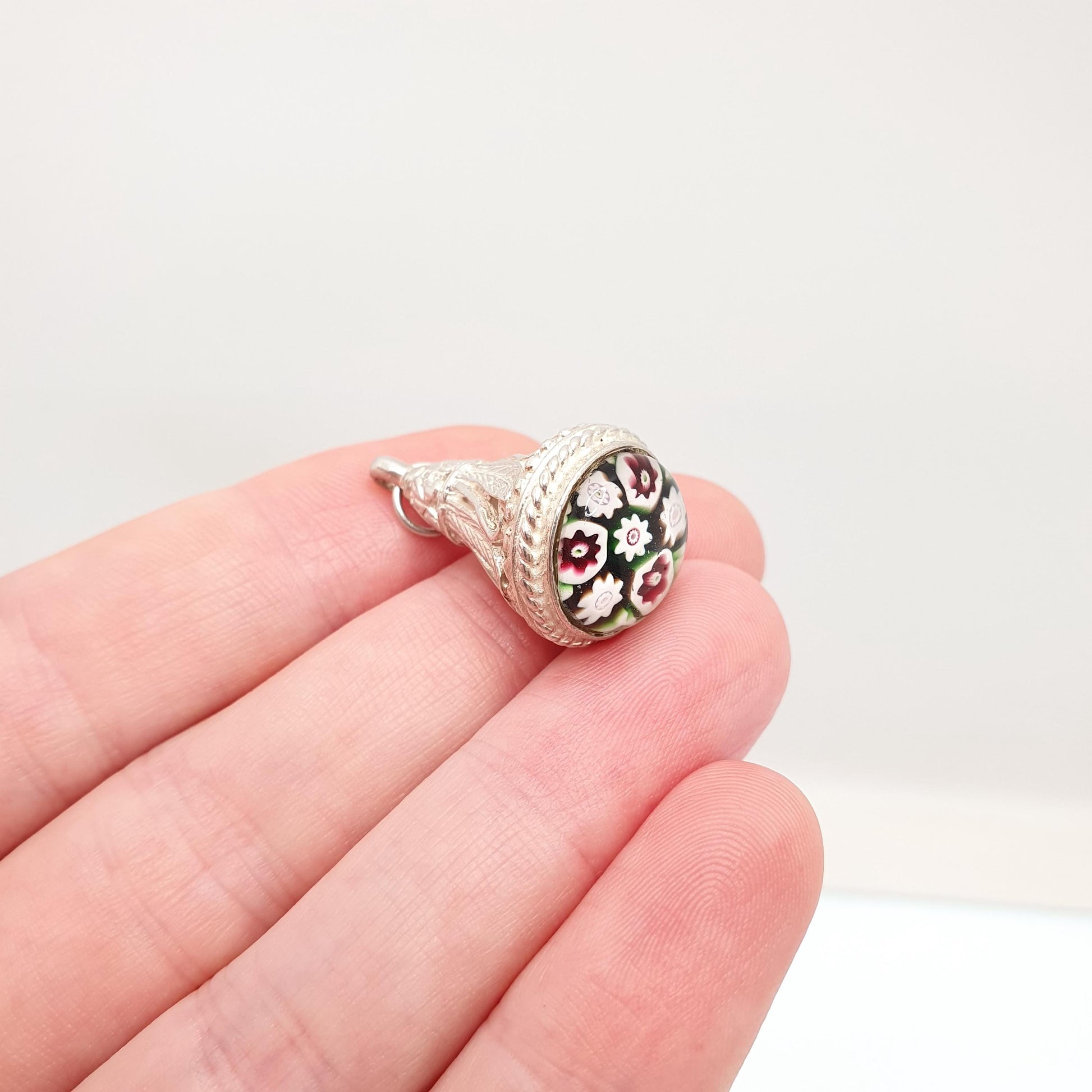 DESCRIPTION: A beautiful vintage genuine venetian Murano millefiori glass fob pendant, made from sterling silver. The pendant is fully hallmarked for sterling silver, dating to 1971. It weighs approx. 8.45g and the size dimensions are in the later photos.