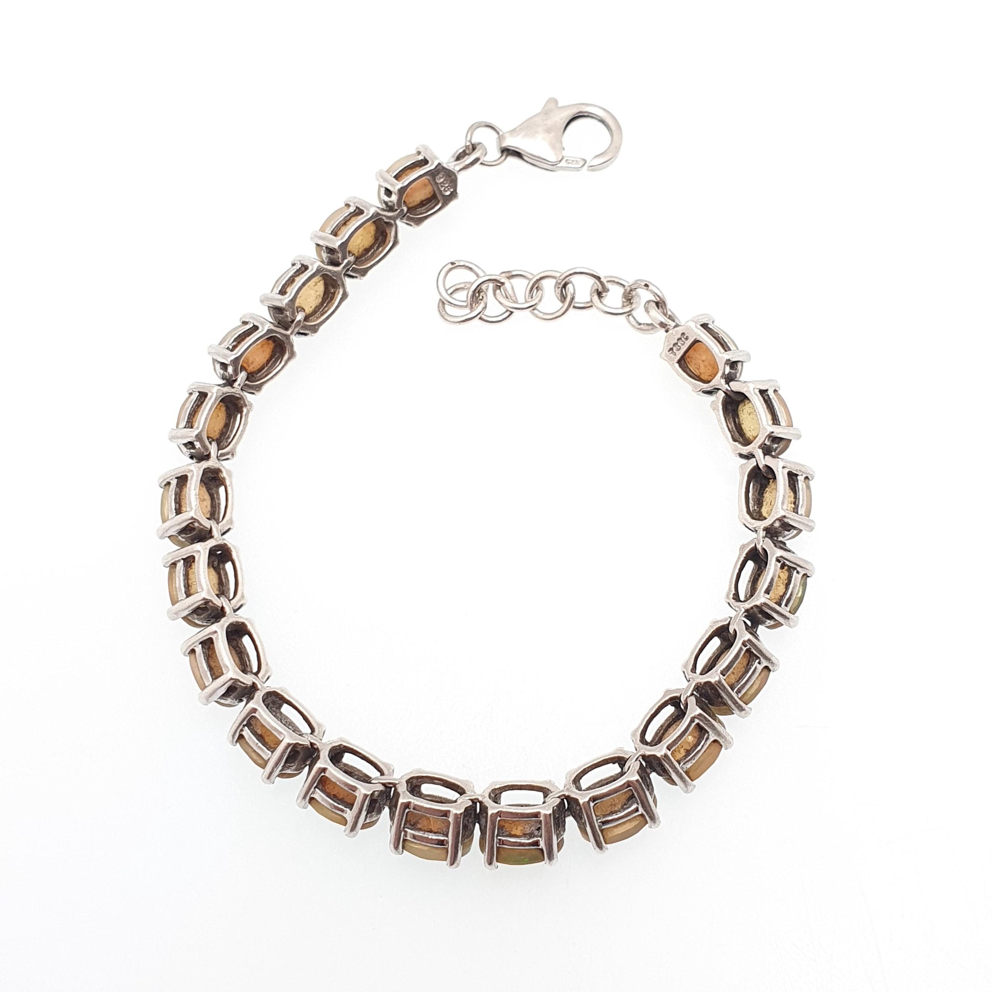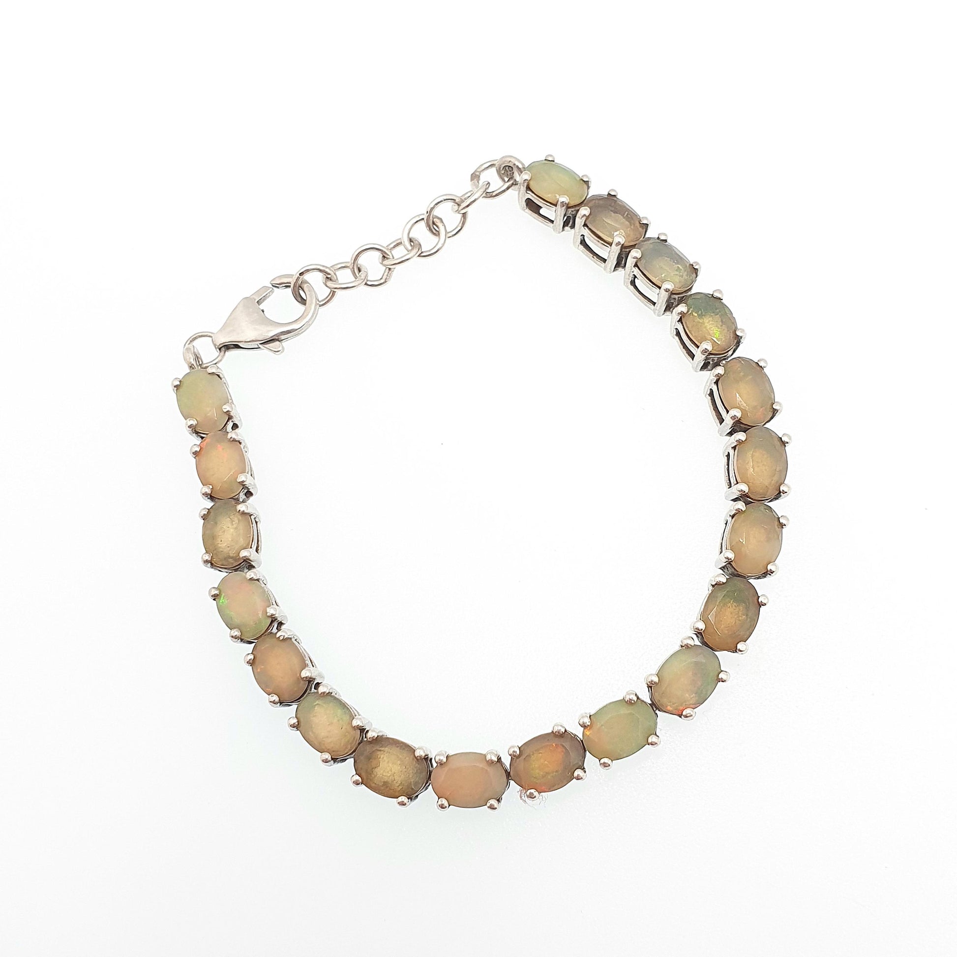 DESCRIPTION: A stunning sterling silver opal tennis bracelet, with gorgeous oval cut opals in various colours. The bracelet measures approx. 18.5cm or 7.25" in unfastened length and weighs approx. 12.69g. It's made by TGGC and stamped "TGGC 925".