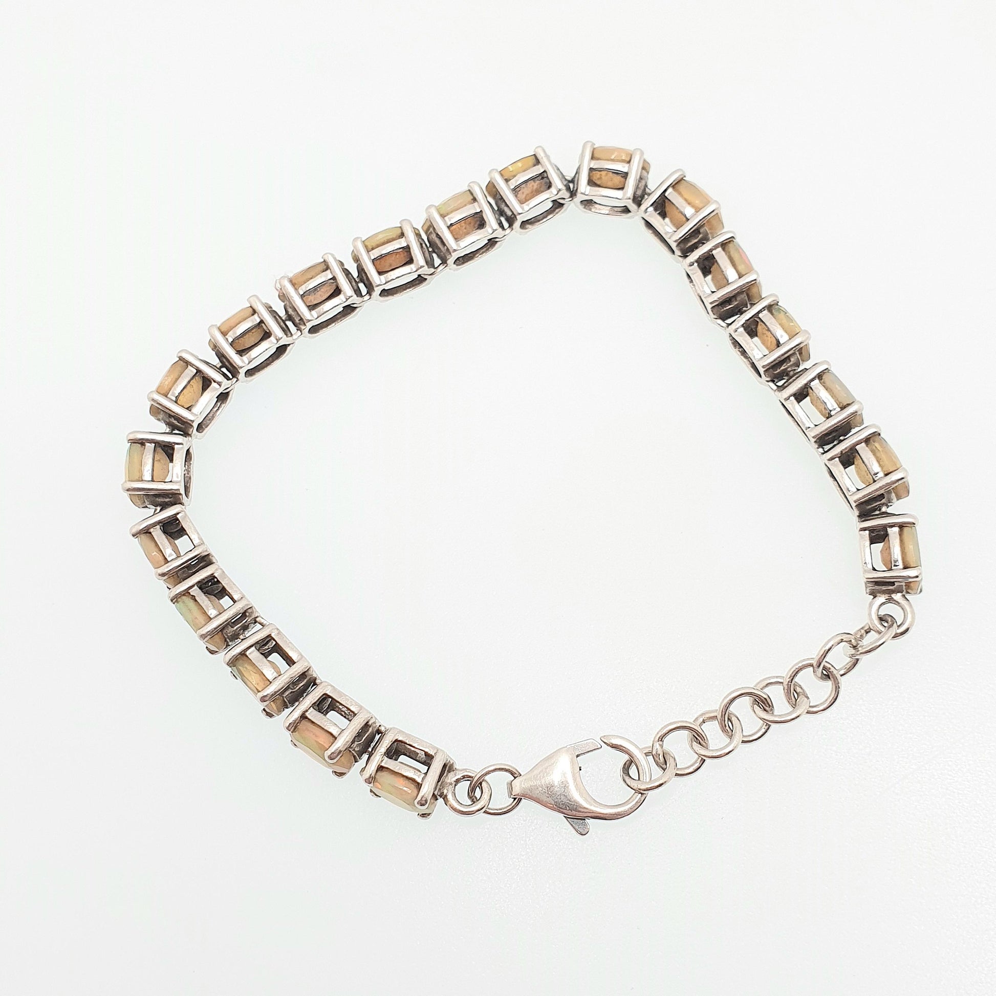 Vintage Sterling Silver Opal Tennis Bracelet Solid 925 TGGC Oval Cut Ladies Womens Jewelry Retro Jewellery