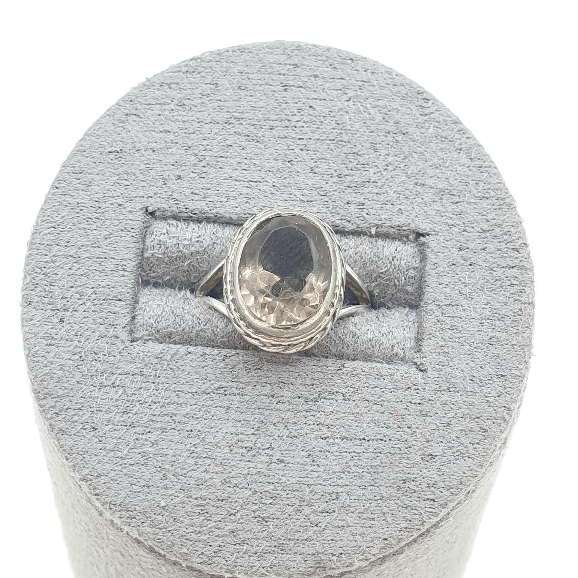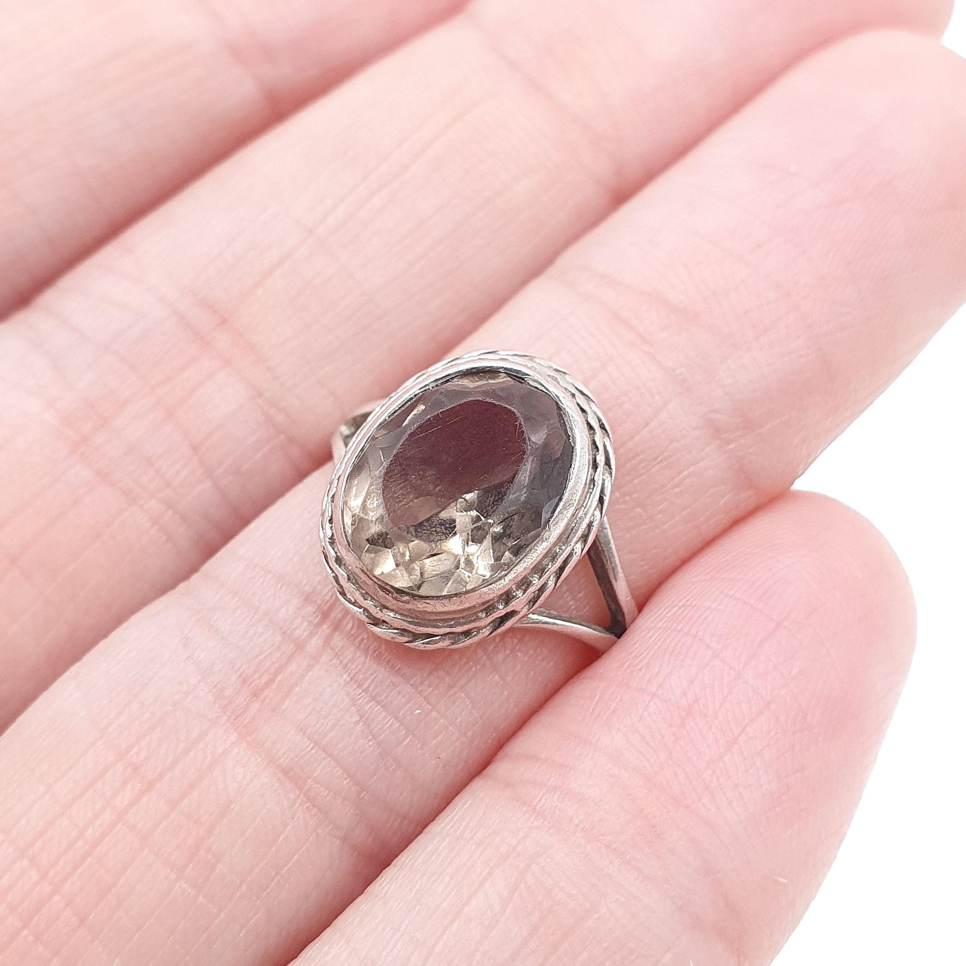 Vintage Sterling Silver Smoky Quartz Ring Small Size Pinky Pinkie Oval Cut Gemstone Womens Jewelry Jewellery