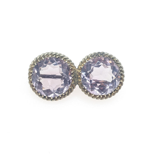 Antique Victorian Natural Amethyst Brooch Infinity Double Round Cut Gold Tone Base Metal Lilac Purple Womens Jewellery Jewelry