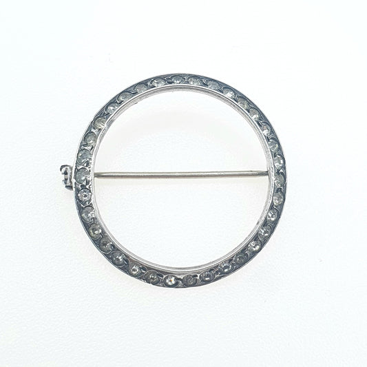 Antique Art Deco Solid Silver Diamond Paste Brooch Pin Round Infinity Circle French Old Vintage Jewelry Jewellery
