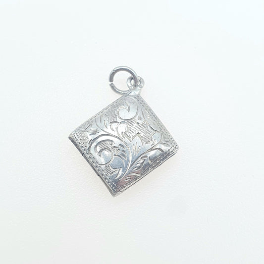 Vintage Sterling Silver Square Locket Small Tiny Necklace Pendant Engraved Picture Photo Jewelry Jewellery